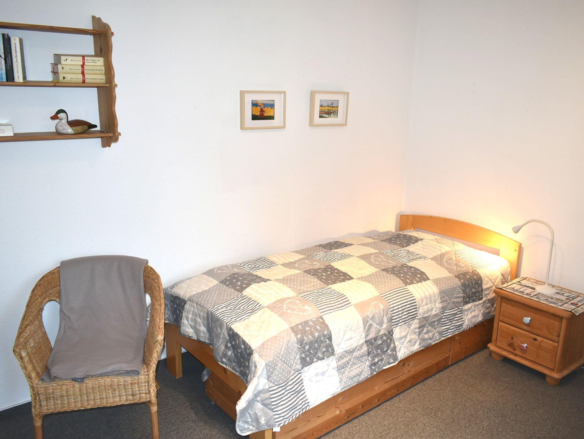 Schlafzimmer 2: Einzelbett 2,00 x 0,90 m, Nachttisch, Anrichte, Couchtisch, Flachbildschirm, Kabel-TV, Korbsessel, Schlafcouch 2,00 x 1,25 m, Stehlampe
