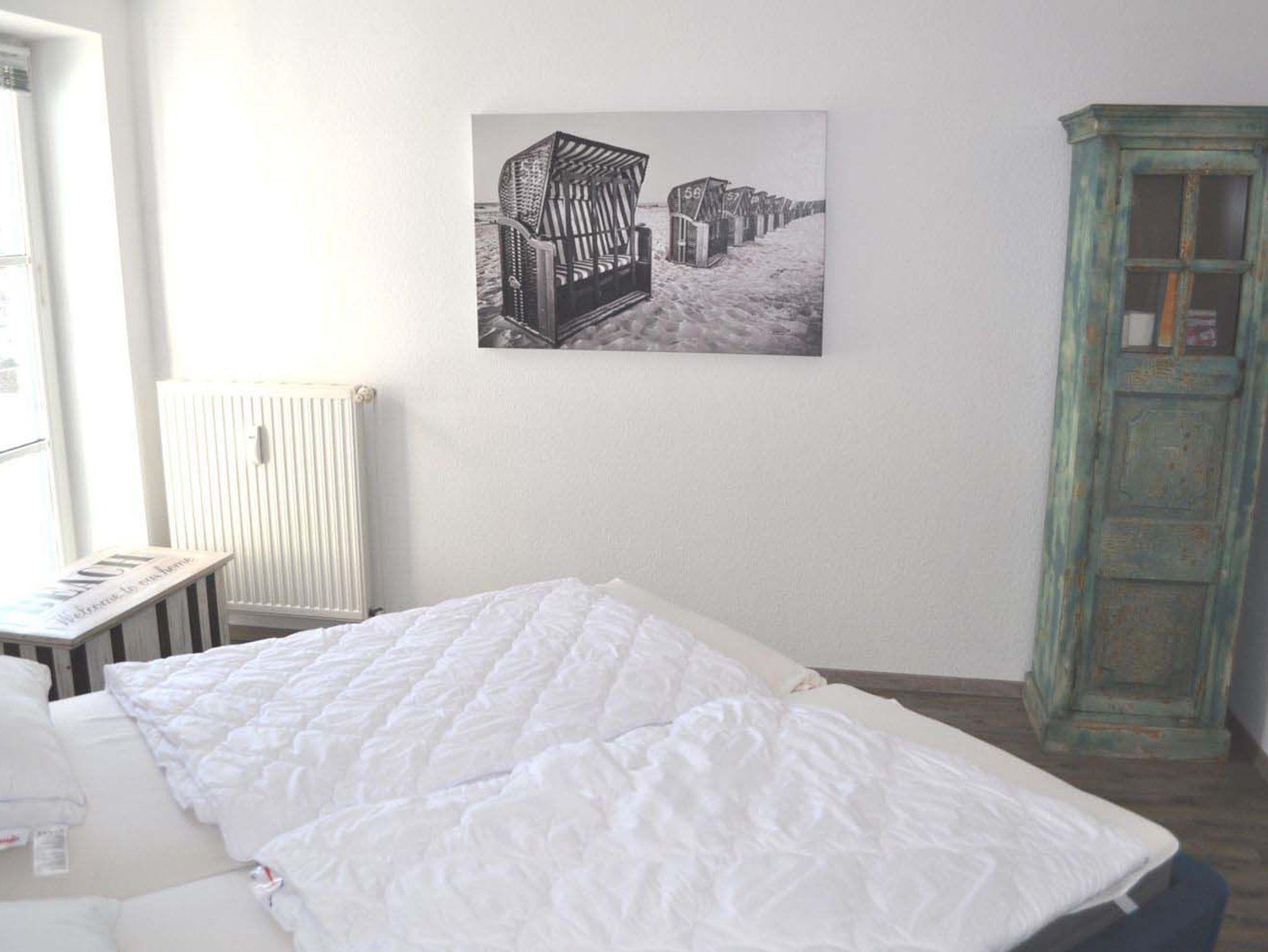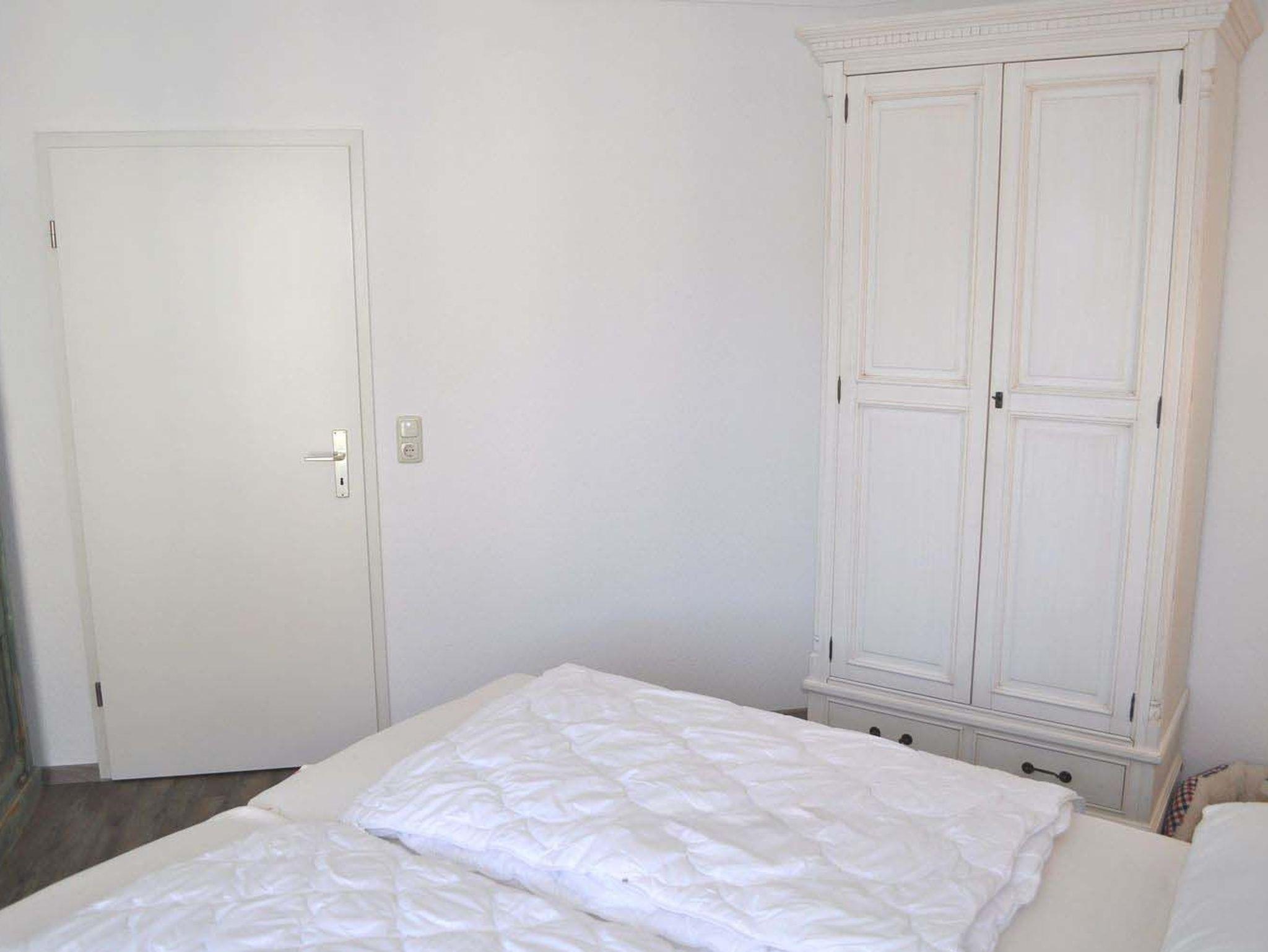 Schlafzimmer 1: 2 Matratzen, 2 Nachttische, Doppelbett 2,00 x 1,80 m, Kleiderschrank, Schrank, Stummerdiener mit Spiegel, Truhe