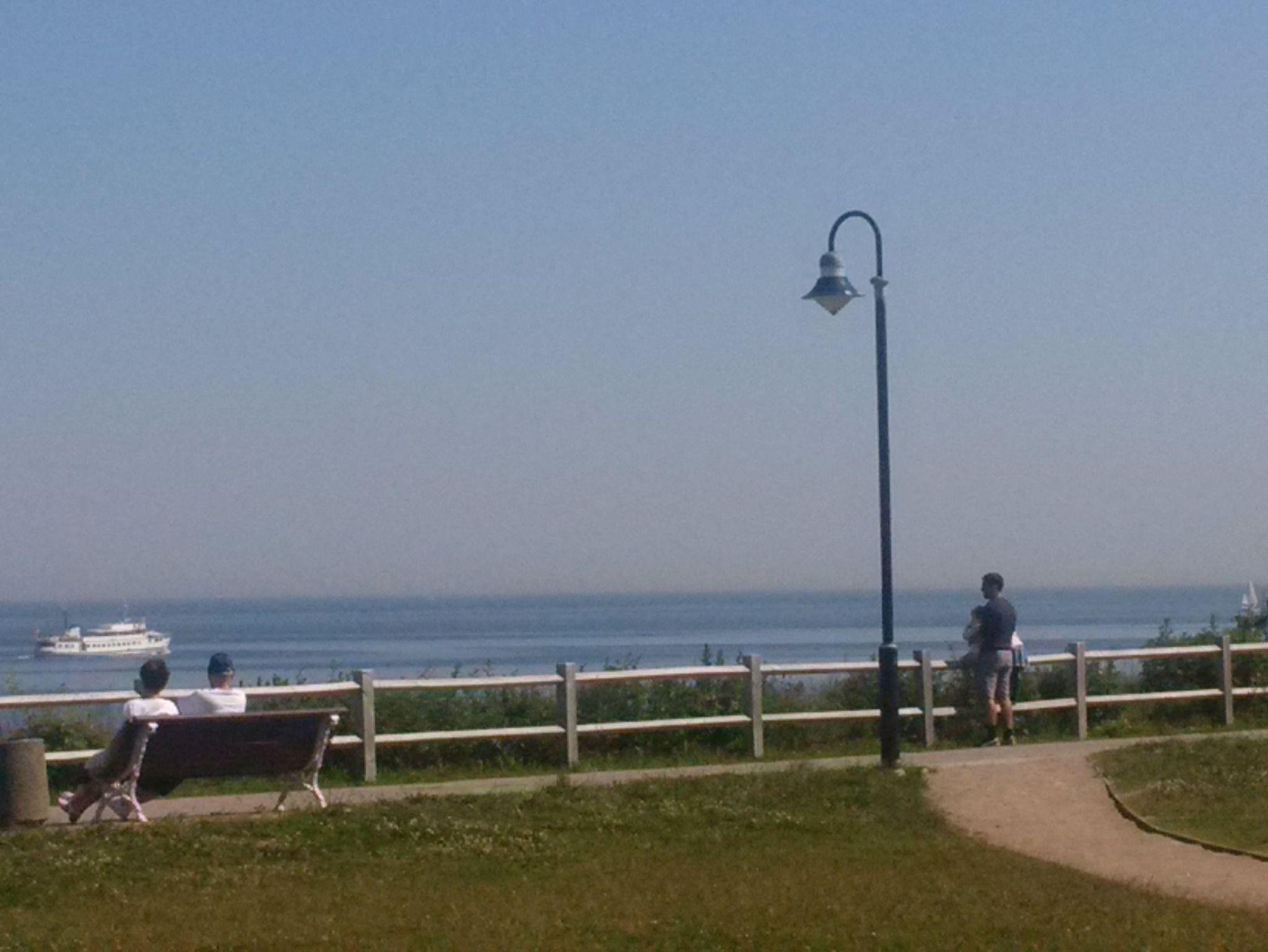 ca.750m. Dort können Sie den Schiffsverkehr von und aus Warnemünde beobachten.