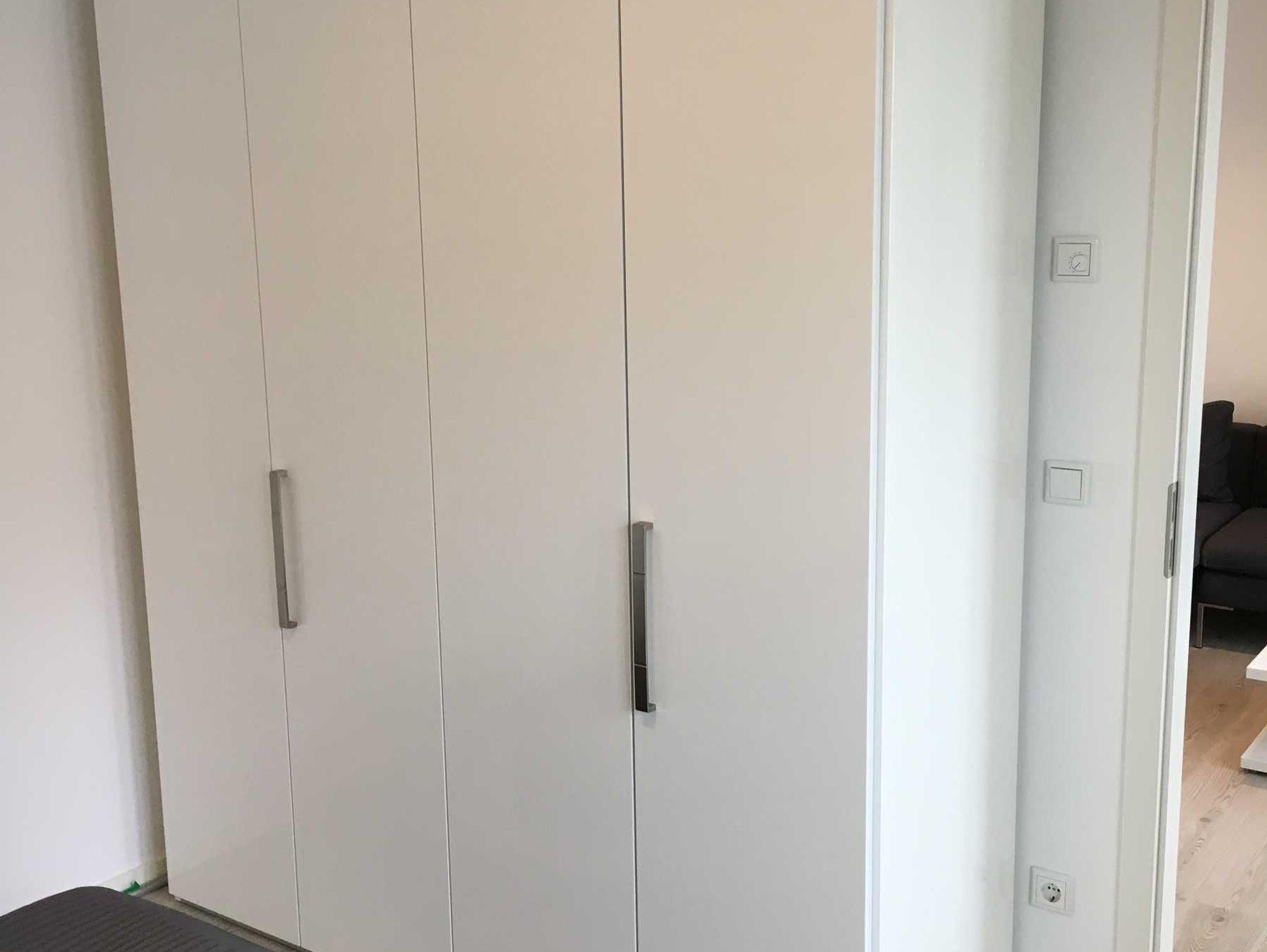 Im Wohnzimmer finden Sie eine schicke Couch 70x200, Flatscreen- TV und Musikanlage. Designerbett 160x200 cm (zwei Matratzen 80x80) und Schrank im Schlafzimmer.