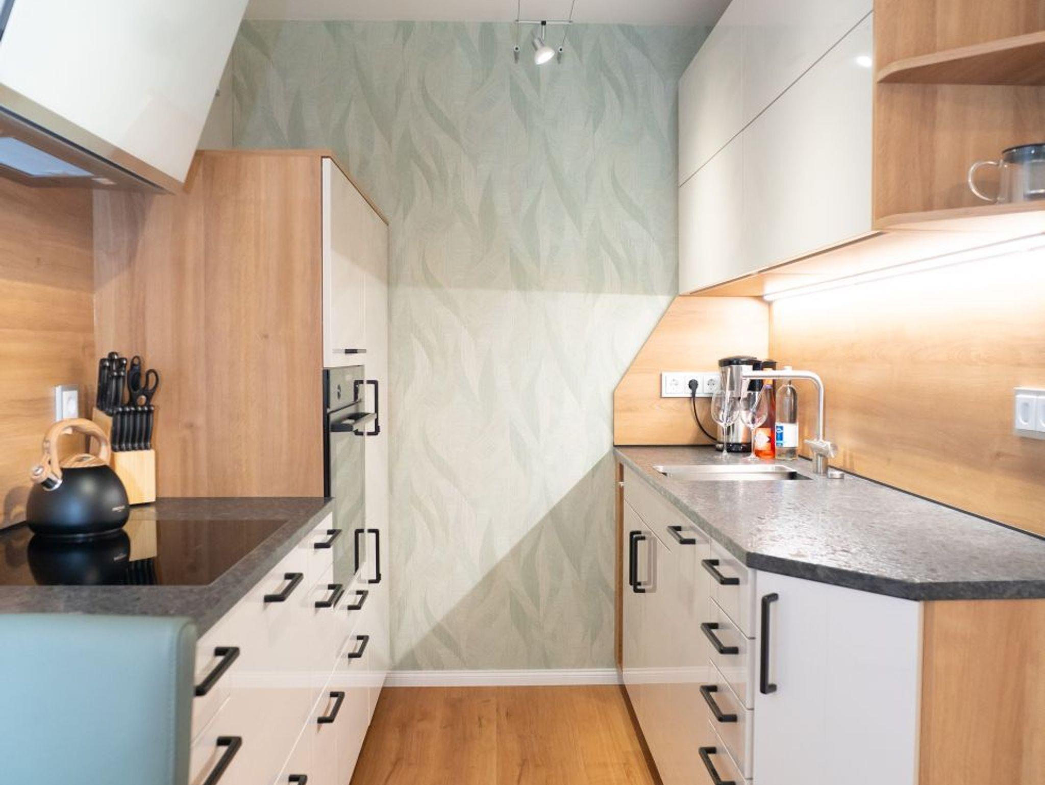 Die aktuelle multimediale Ausstattung mit Fernseher (inkl. Internetanschluss) und Soundbar lässt auch bei einem regnerischen Tag keine Wünsche offen. In der angeschlossenen Küche wird es Ihnen an nichts fehlen. Die moderne Küchenausstattung (Kühl- und Gefrierkombination, Induktionskochherd, Backofen, Mikrowelle, Geschirrspüler) hilft beim Zaubern so mancher Leckerei, freut sich aber auch Ihnen beim Frühstück behilflich zu sein. Das Badezimmer ist gemütlich und barrierefrei mit einer ebenerdigen, großen Dusche ausgestattet.
