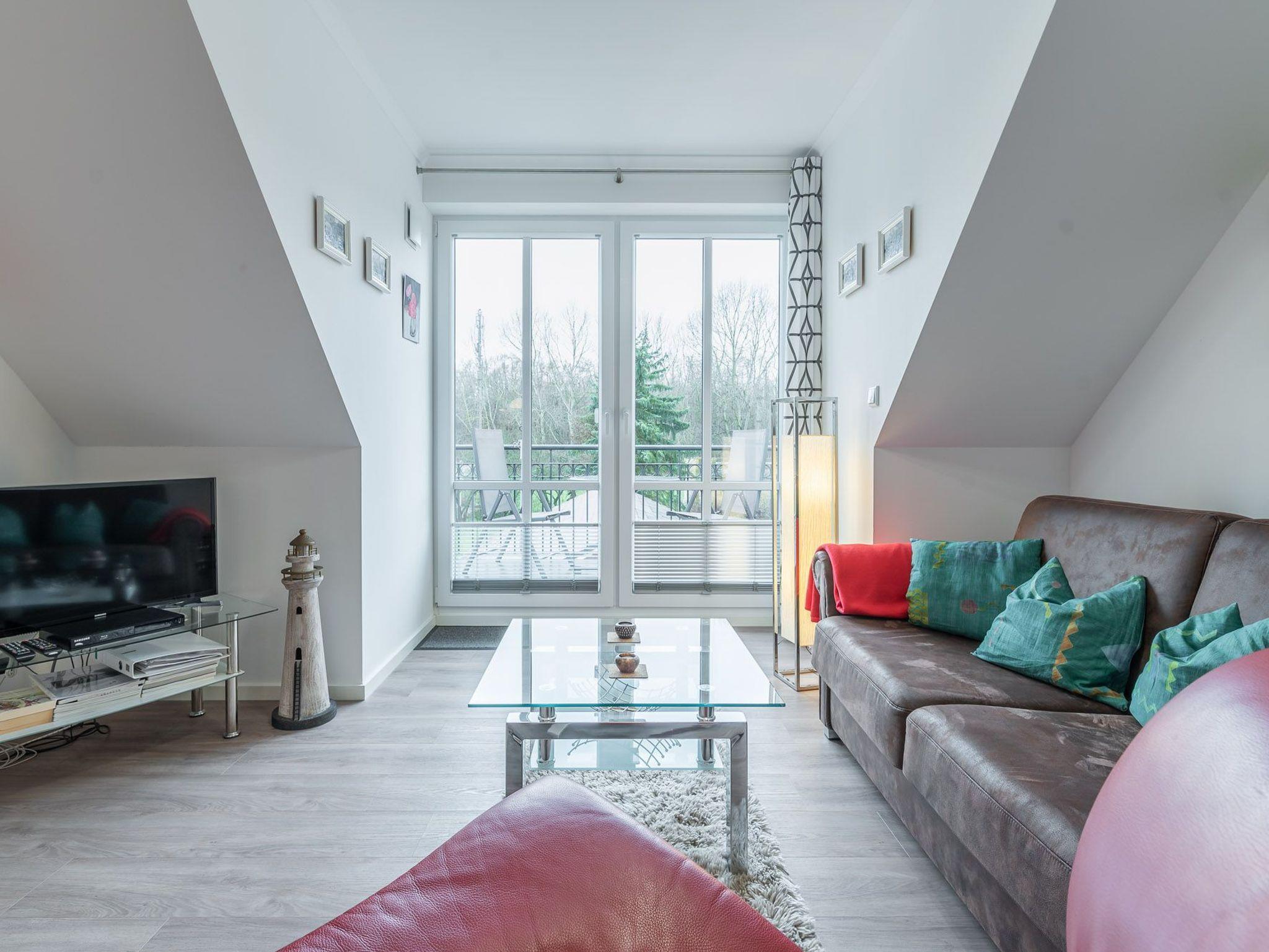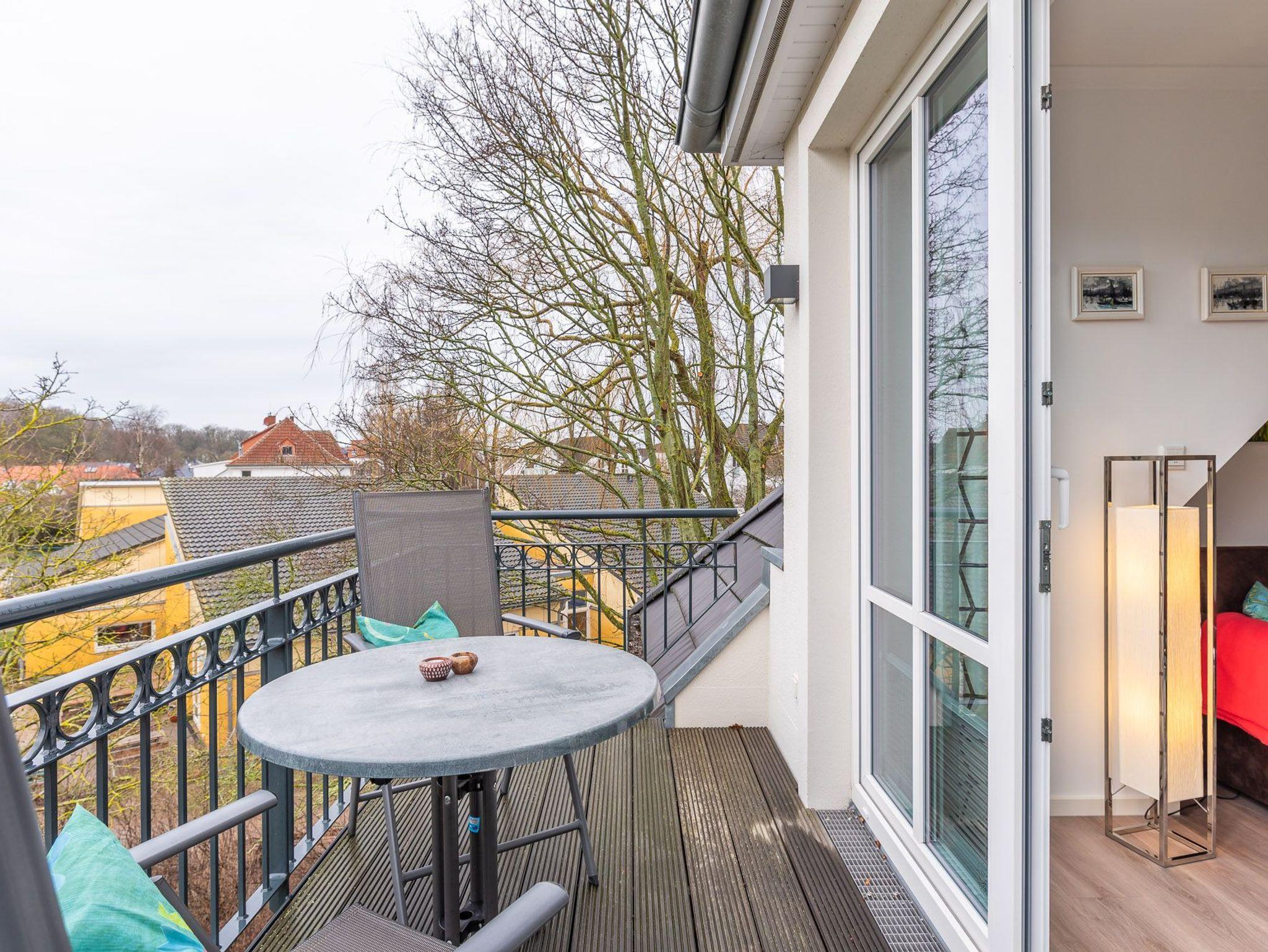 Moderne Zweizimmer-Obergeschoss-Wohnung mit großem Süd-West-Balkon mit Blick auf den Gespensterwald und nur wenigen Schritten zur Steilküste und zum Strand.
