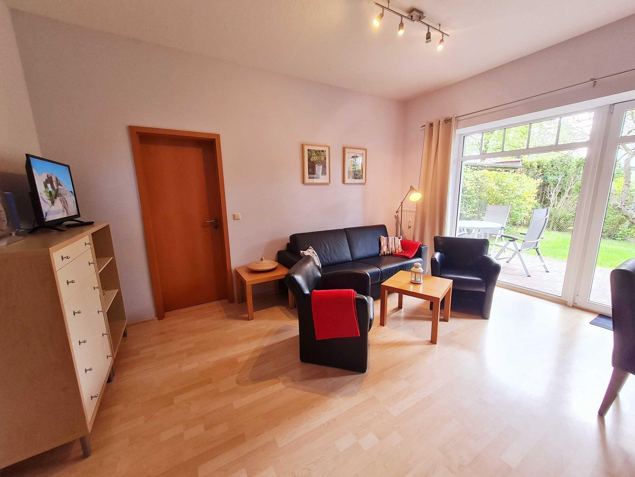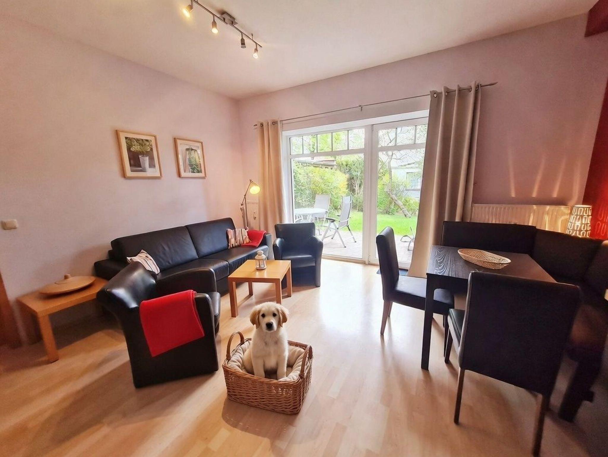 Gemütliche Ferienwohnung mit Südterrasse, nahe Ostseestrand in Nienhagen, ideal für Familien und Haustierfreunde.