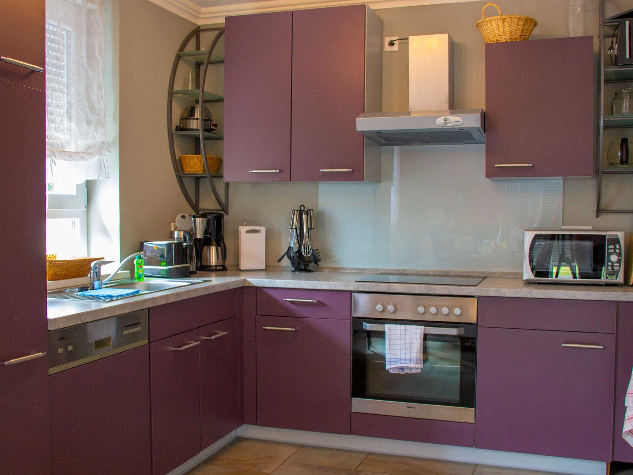 Die Küche ist für 8 Personen komplett ausgestattet u.a. mit Herd, Geschirr, Kochtöpfen, Besteck und Gläsern, Kühlschrank, Kaffeemaschine, Backofen, Mikrowelle, Gefrierfach, Spülmaschine und Toaster.