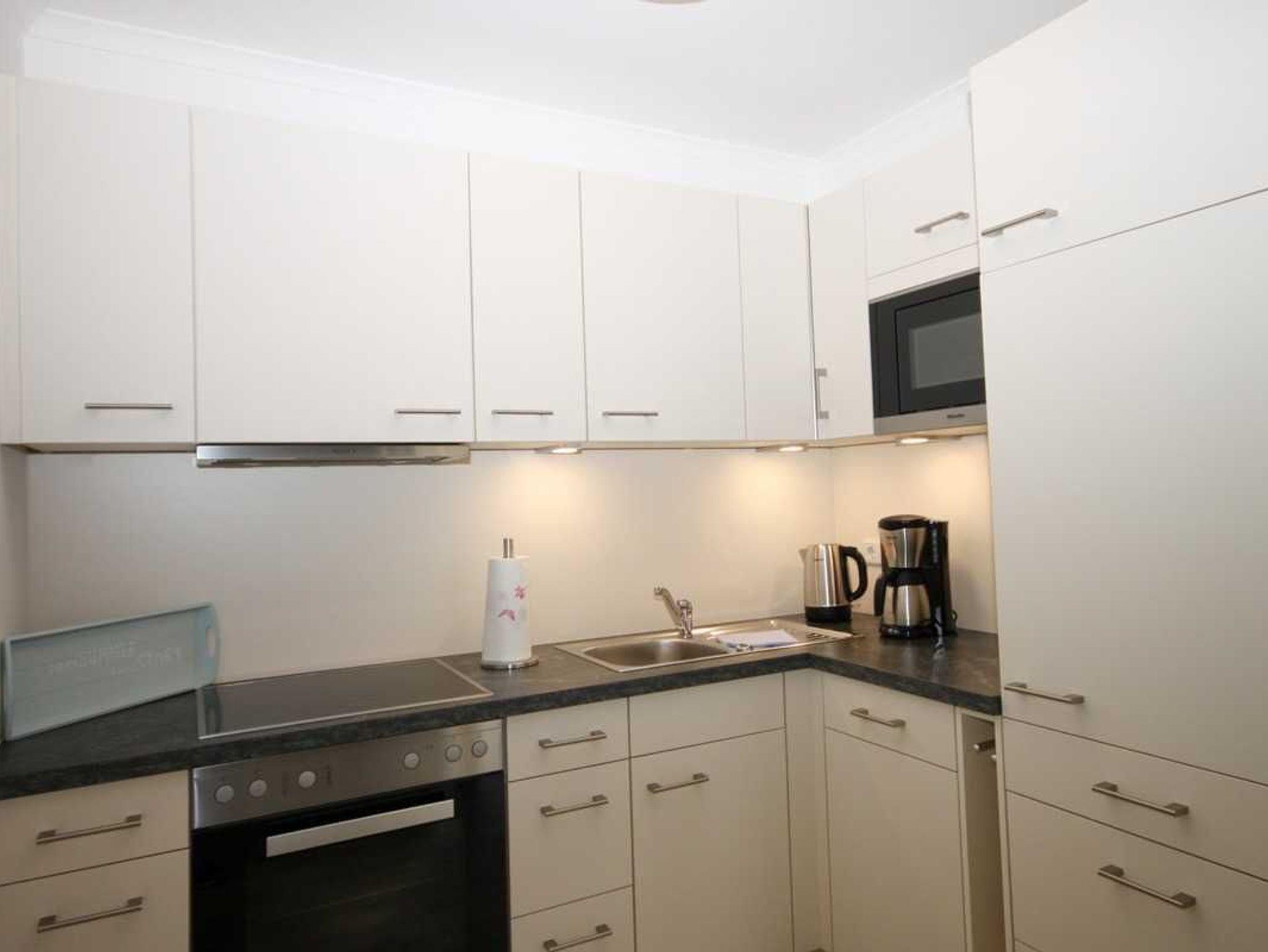 Die Einbauküche ist hochwertig mit Geschirrspüler, Kühlschrank (mit Gefrierfach), Kaffeemaschine, Wasserkocher, Toaster, Mixer, ausreichend Geschirr und Besteck, 4-Platten-Herd (Ceran) mit Backofen und einer Mikrowelle ausgestattet.
