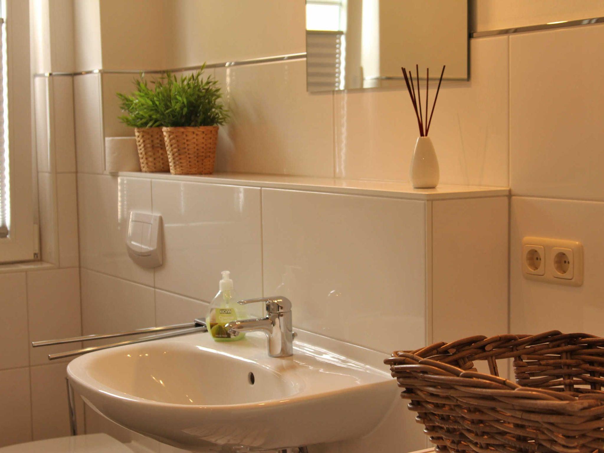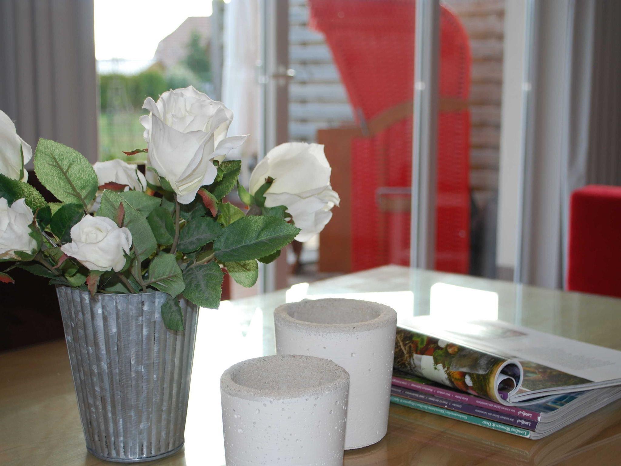 Sie bewohnen das Erdgeschoss mit sonniger Südterrasse und eigenem Garten. Die angrenzende Grünfläche sorgt für Weitblick und eine entspannte Atmosphäre. Ein Strandkorb lädt zum Verweilen ein, weitere Gartenmöbel sowie ein Grill stehen ebenfalls zur Verfügung. Für unsere kleinen Gäste gibt es eine Schaukel und eine Sandkiste.