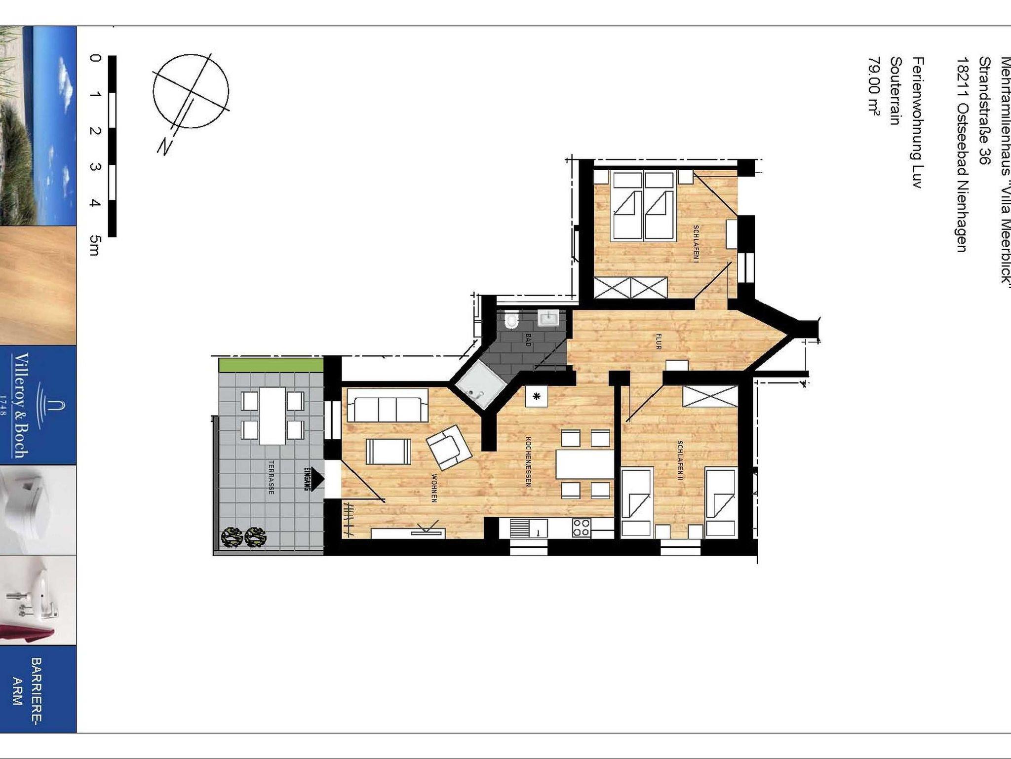 Die 3 Zimmerwohnung LUV ist 2016 neu fertiggestellt worden. Sie befindet sich ca. 50 m vom Strand im Ostseebad Nienhagen an der mecklenburgischen Ostseeküste. Die Einrichtung entspricht den Standards der heutigen Zeit. Sie liegt im unteren (Souterrain) Geschoss mit noch einer Ferienwohnung. Beide Ferienwohnungen haben eine möblierte Terrasse.