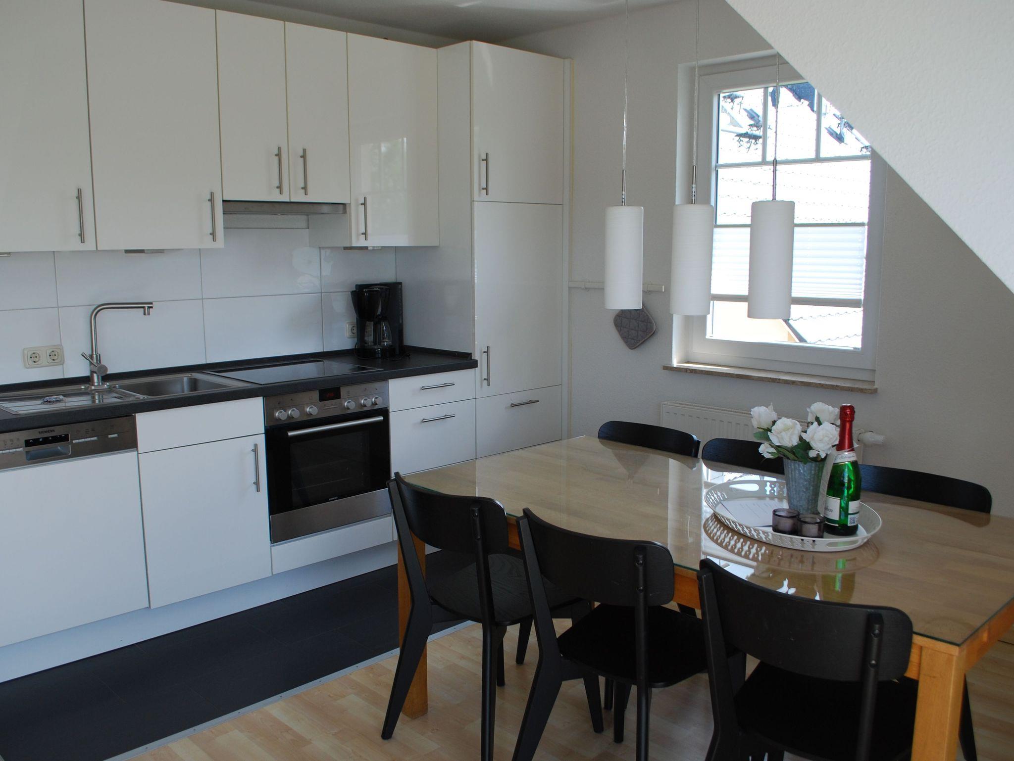 Die moderne Einbauküche ist ausgestattet mit Backofen, Kühlschrank inklusive Gefrierfach sowie Geschirrspülmaschine und bietet alles für eine komfortable Selbstversorgung. Im Badezimmer können Sie die vorhandene Waschmaschine kostenfrei nutzen.
