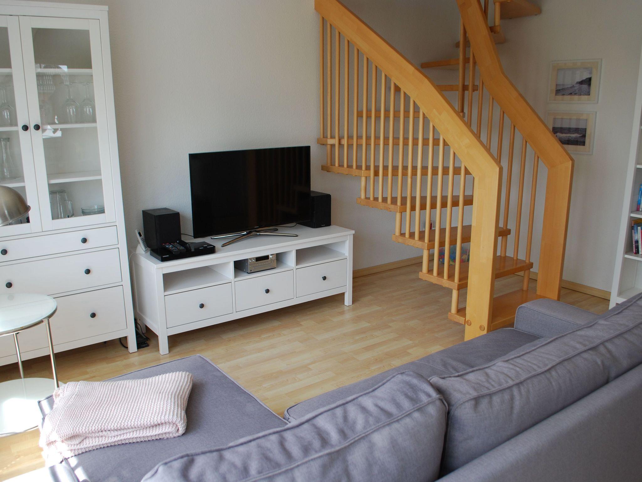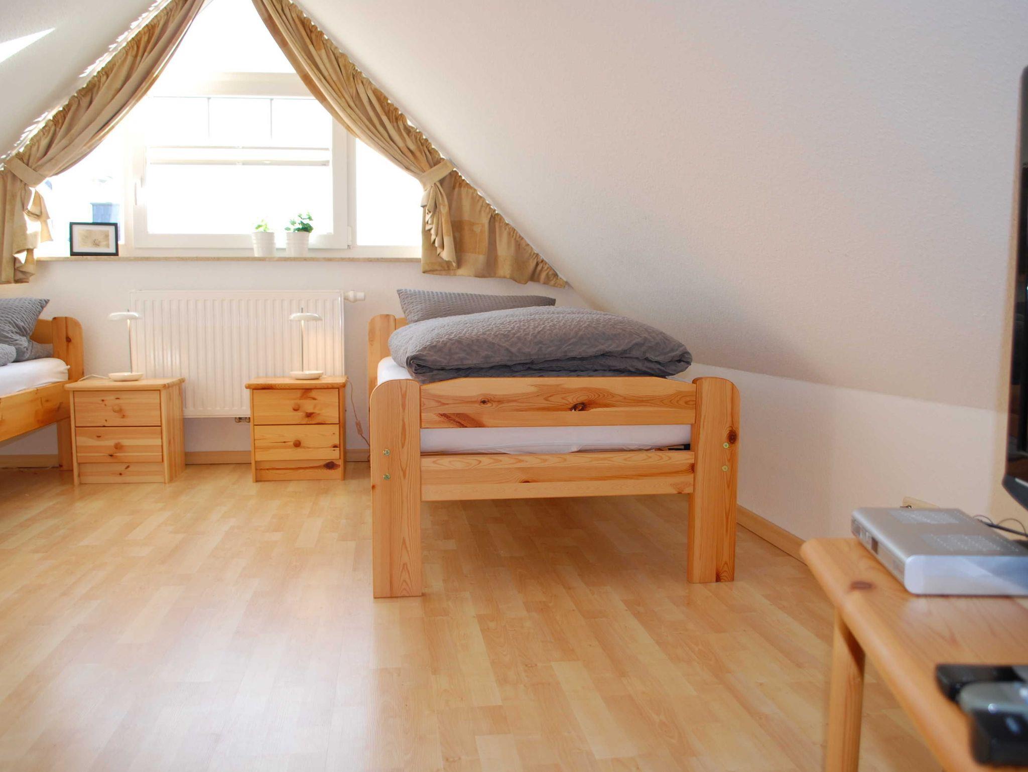 Reisen Sie mit mehr als vier Personen, besteht die Möglichkeit, zusätzlich die im Haus befindliche Erdgeschosswohnung „Steilküste“ hinzuzubuchen. Das 3-Raum-Appartement verfügt über zwei Schlafzimmer ? eines mit zwei Einzelbetten im Dachgeschoss, ein weiteres mit Doppelbett ? sowie ein Wohnzimmer mit geräumiger Schlafcouch. Die 2,20 m langen Bettdecken sorgen für besonderen Schlafkomfort. Für unsere kleinen Gäste stellen wir kostenfrei ein Reisebabybett sowie einen Kinderhochstuhl zur Verfügung.