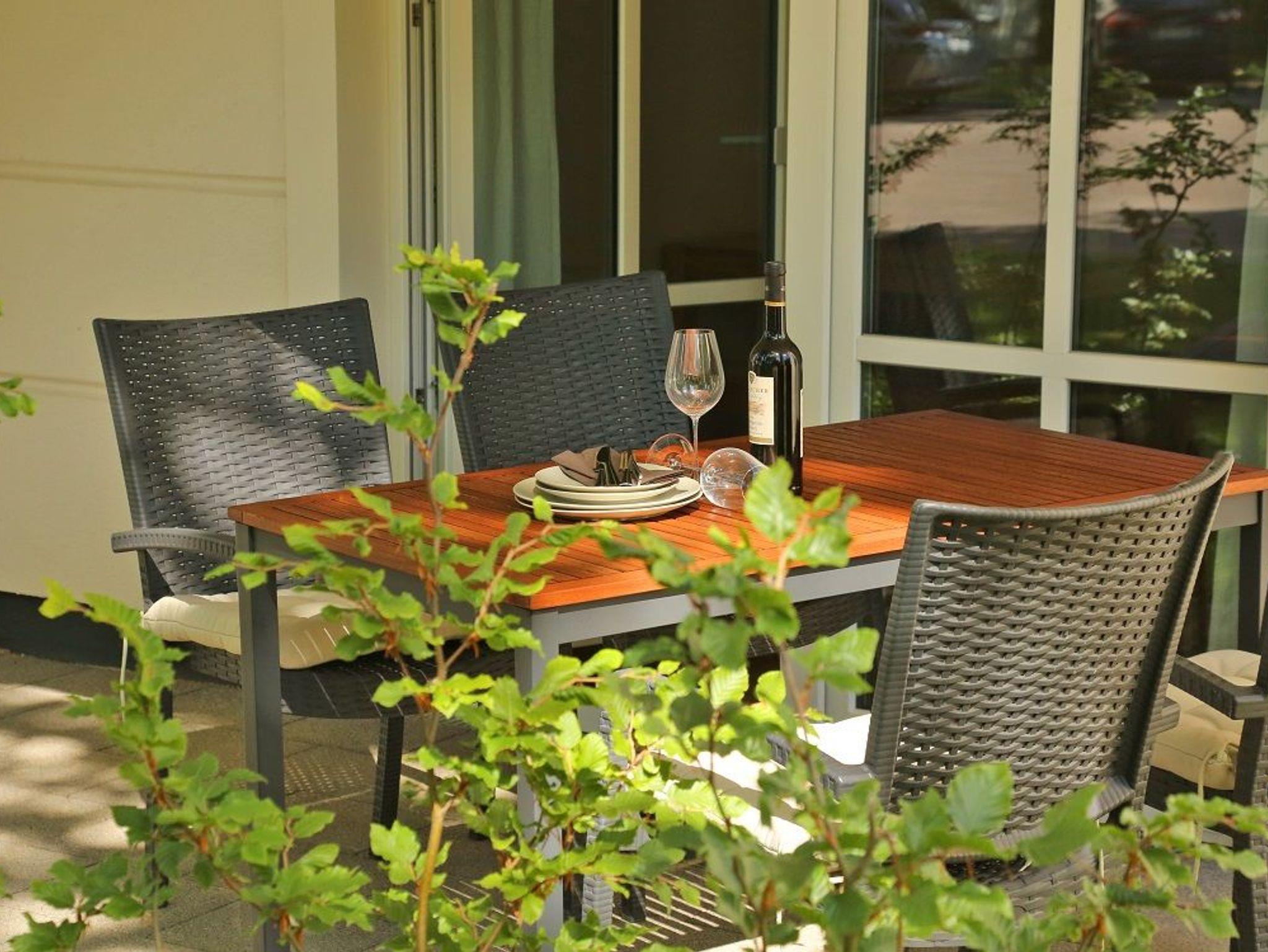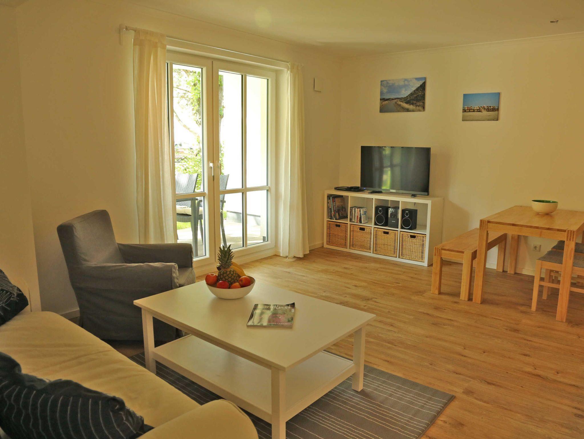 Moderne Ferienwohnung mit Süd-Terrasse und kostenfreiem WLAN im ruhigen Ostseebad Nienhagen.