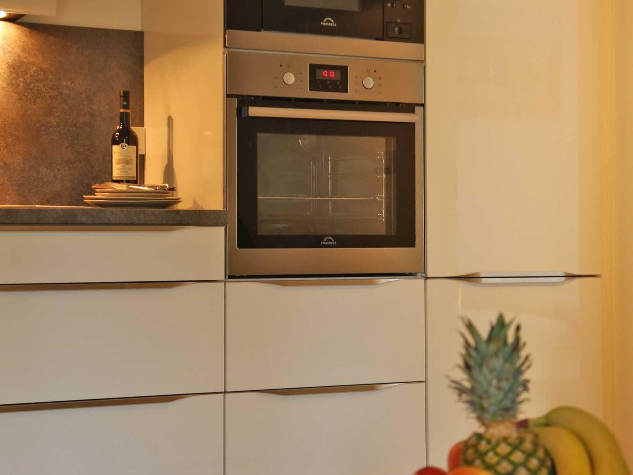 Unsere Ferienwohnung haben wir mit einer hochwertigen, offenen Wohnküche mit zahlreichen Küchenutensilien ausgestattet.