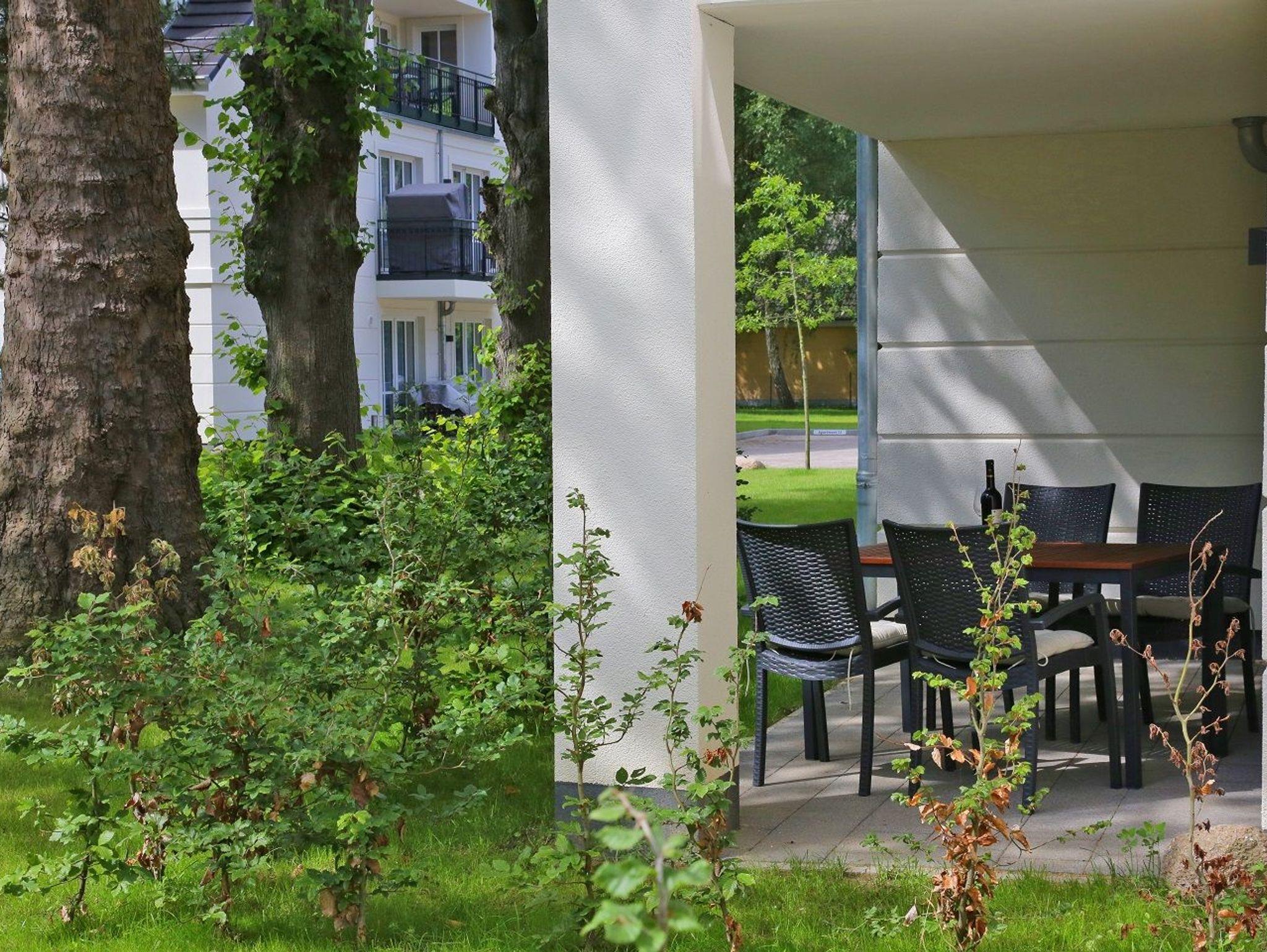 Unsere Ferienwohnung mit Süd-Terrasse (9m²) befindet sich im Erdgeschoss in einer in 2015 fertiggestellten, architektonisch ansprechenden ruhigen Wohnanlage im idyllischen Ostseebad Nienhagen.