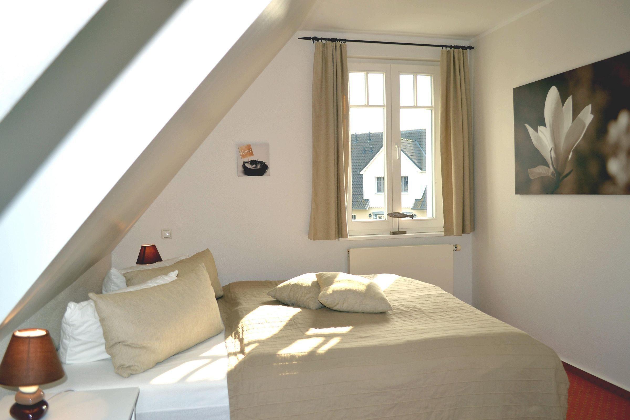 In das Obergeschoss gelangen Sie über eine Wendeltreppe. Hier befinden sich zwei Schlafzimmer, jeweils mit einem komfortablen Doppelbett ausgestattet, eines davon mit einem zusätzlichen Fernsehgerät. Beide Zimmer verfügen über je einen geräumigen Kleiderschrank.