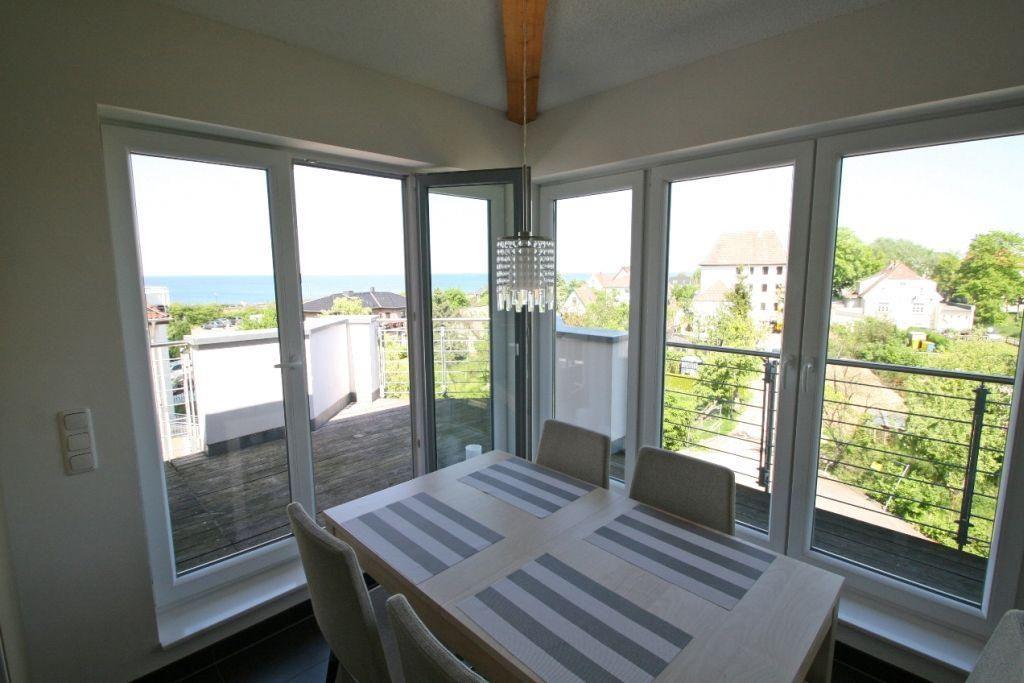 Helles Penthouse mit tollem Ostseeblick und umlaufender Dachterrasse - genießen Sie hier unvergessliche Urlaubstage und auf der herrlichen Dachterrasse mit eigenem Strandkorb die Sonne und die tolle Sicht auf die Ostsee. Hier können Sie einfach Ihre Seele baumeln lassen.