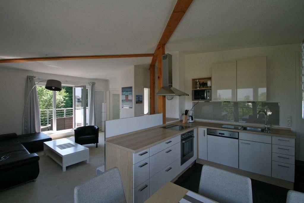 Die hochwertige offene Einbauküche mit großzügigem Esstisch für bis zu 4 Personen und herrlichem Ostseeblick ist mit Geschirrspüler, Backofen, Cerankochfeld, Kühlschrank mit Gefrierfach, Kaffeemaschine, Wasserkocher, Toaster etc. ausgestattet und komplett eingerichtet.