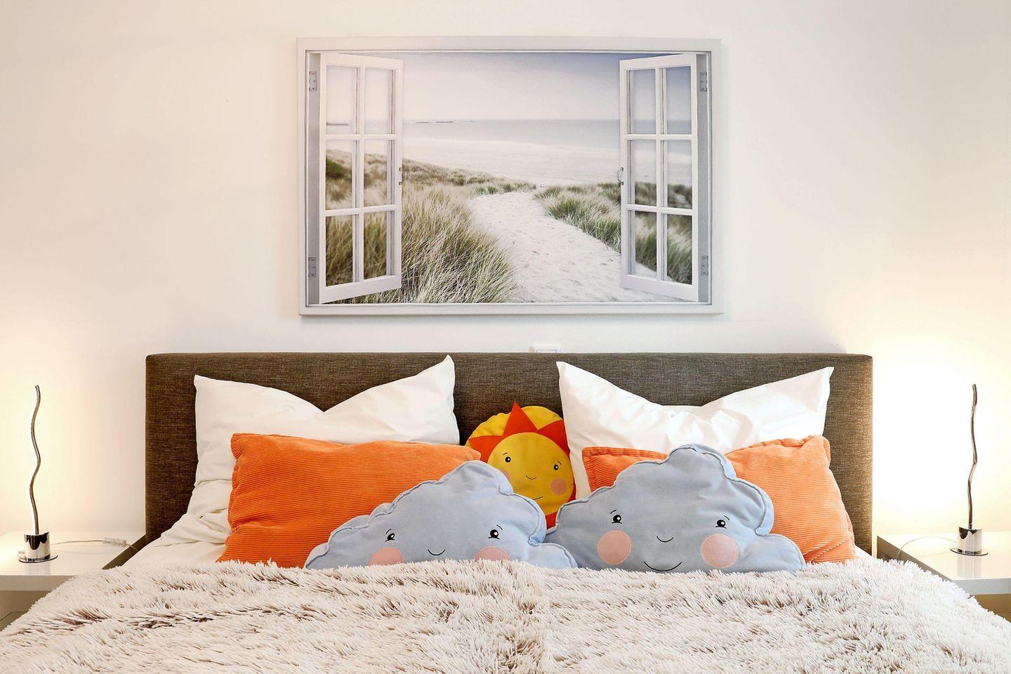 Das Schlafzimmer verfügt über ein hochwertiges Boxspringbett (180x200) mit