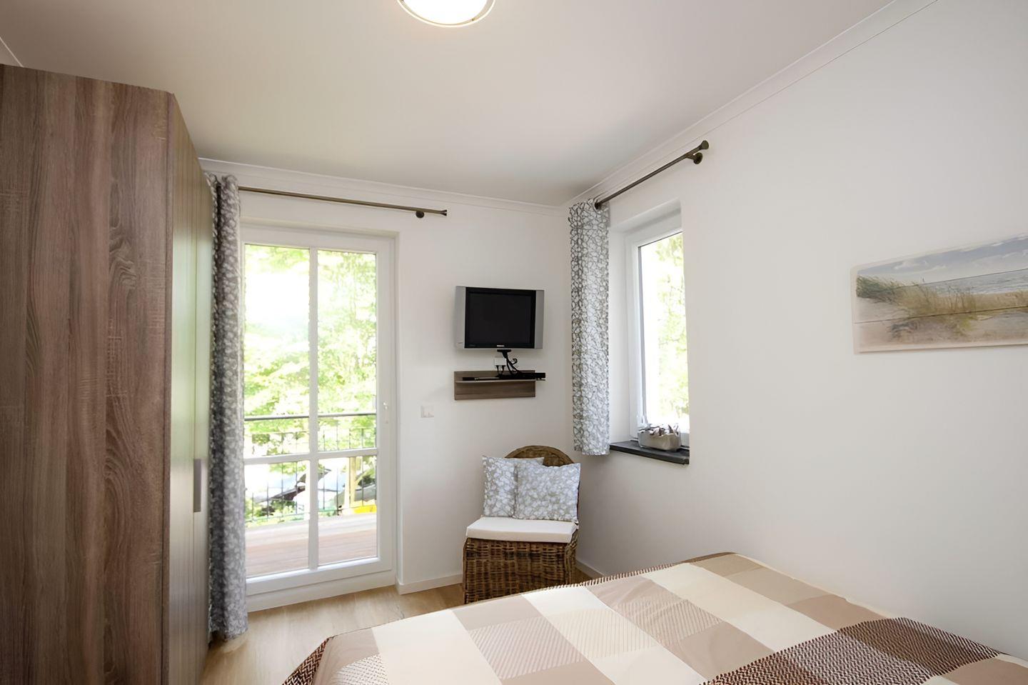 kleineren Schlafzimmer (hier befindet sich auch ein TV-Gerät) kann man auf einen