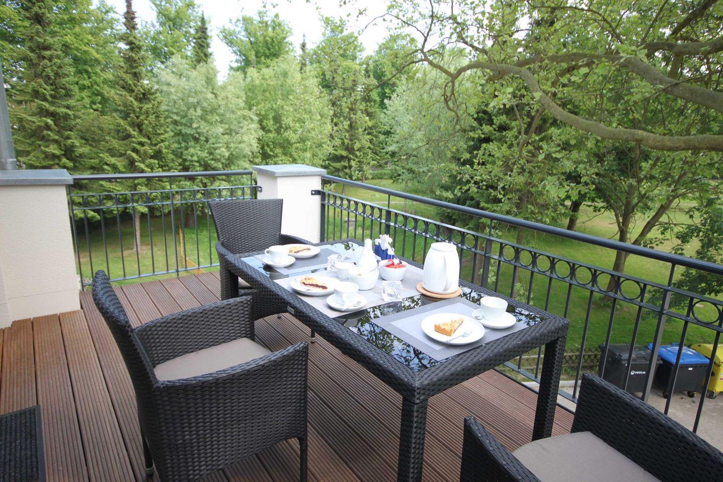 Moderne Ferienwohnung "Mien Lüchttoorn" in Nienhagen mit Balkon, Gartenblick und nur 400 m zum Ostseestrand.