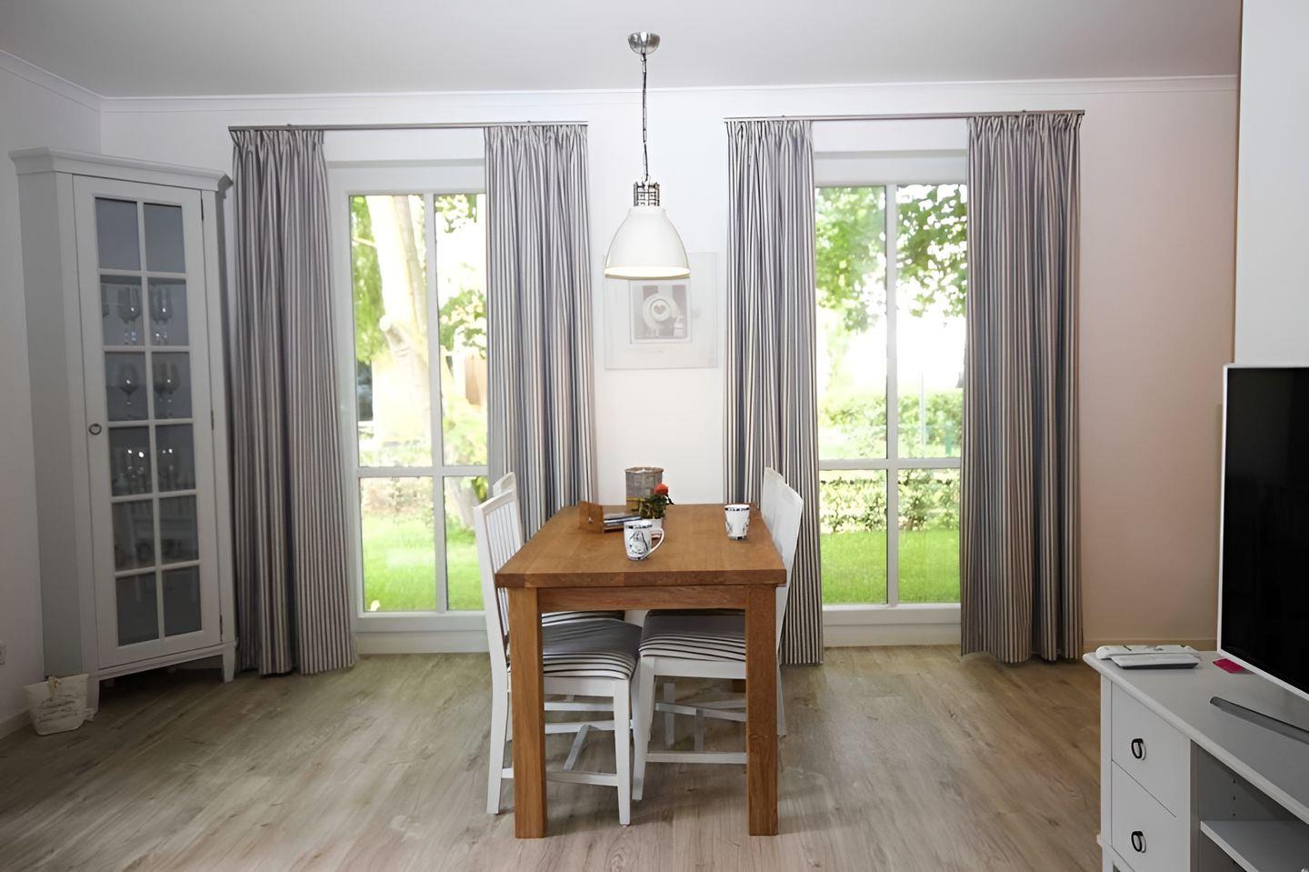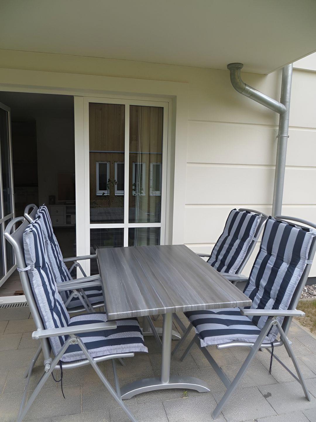 mit einem Tisch und vier Stühlen für gemütliche Stunden während Ihres Urlaubs.