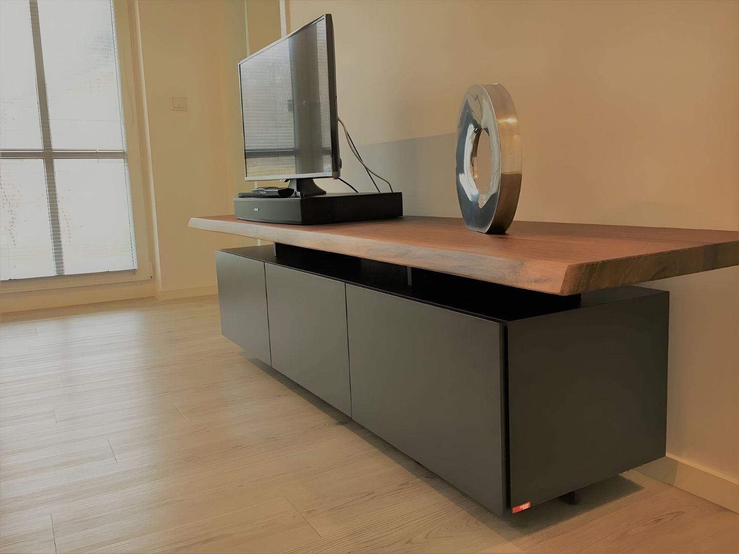 Musikanlage. Designerbett 160x200 cm (zwei Matratzen 80x80) und Schrank im