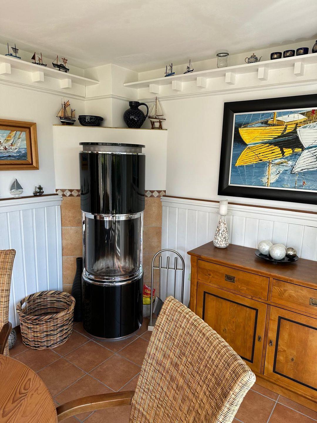 - Ein Wintergarten mit Kaminofen, der auch in der kälteren Jahreszeit für