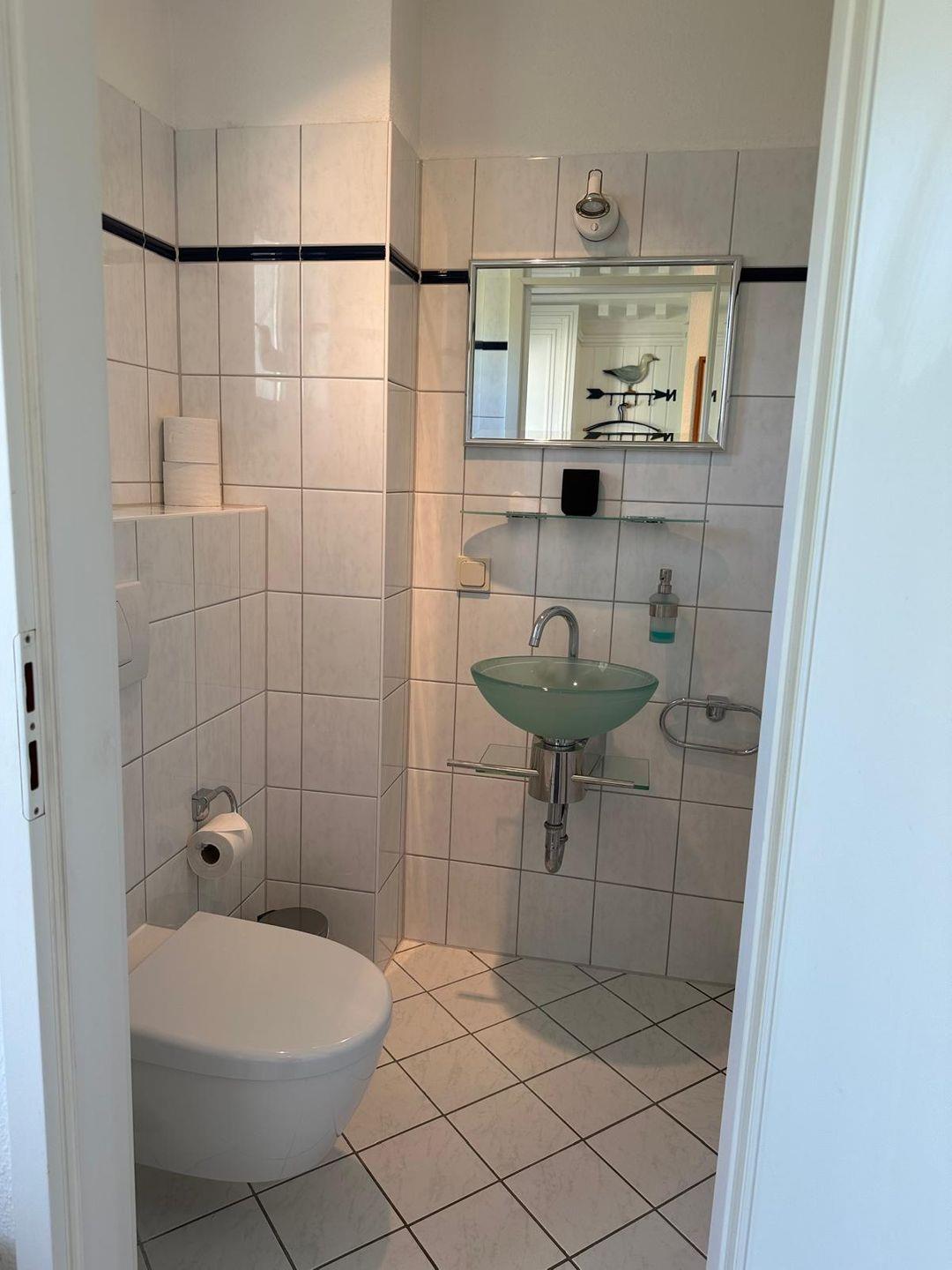 - Ein modernes Badezimmer mit Dusche sowie ein separates Gäste-WC