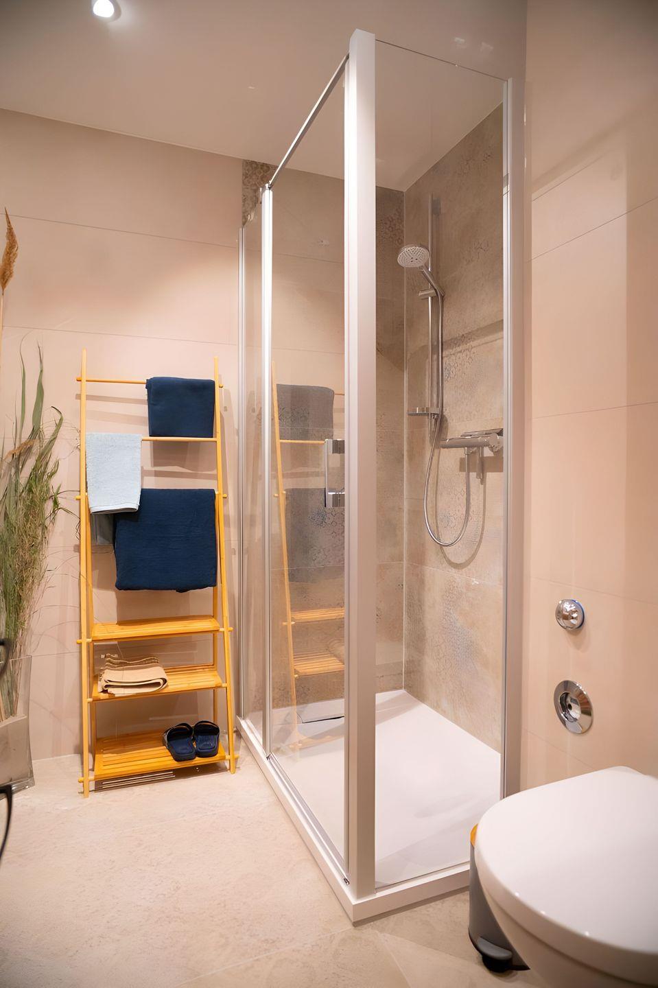 und barrierefrei mit einer ebenerdigen, großen Dusche ausgestattet.