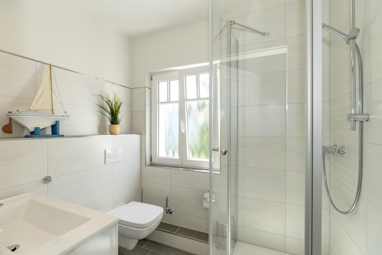 Das moderne Badezimmer bietet alles, was Sie für einen entspannten Start in den Tag brauchen: Dusche, WC, Waschbecken mit großzügigem Unterschrank und ausreichend Ablageflächen für Ihre Pflegeprodukte.