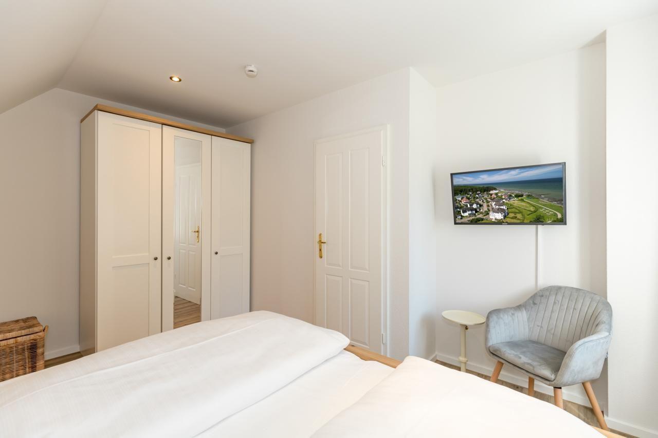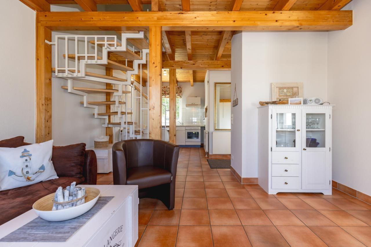 Im Erdgeschoss erwartet Sie ein liebevoll gestalteter Wohnbereich mit zwei bequemen Sesseln und einem gemütlichen Sofa, das sich bei Bedarf in einen komfortablen Schlafplatz für zwei Personen verwandeln lässt. Warme Farben, stilvolle Dekoration und hochwertige Möbel schaffen eine behagliche Atmosphäre – perfekt für entspannte Abende nach einem erlebnisreichen Tag an der Ostsee.