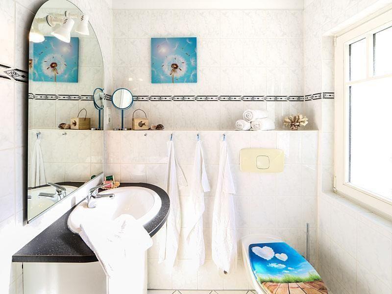 Das moderne Badezimmer bietet alles, was Sie für einen entspannten Start in den Tag brauchen: Dusche, WC, Waschbecken mit großzügigem Unterschrank, Handtuchtrockner und ausreichend Ablageflächen für Ihre Pflegeprodukte.