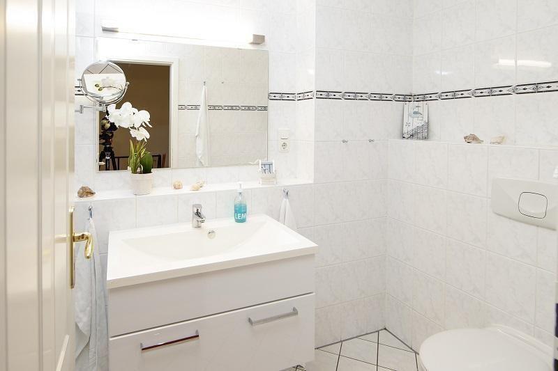 Das moderne Badezimmer bietet alles, was Sie für einen entspannten Start in den Tag brauchen: Dusche, WC, Waschbecken mit großzügigem Unterschrank, Handtuchtrockner und ausreichend Ablageflächen für Ihre Pflegeprodukte.