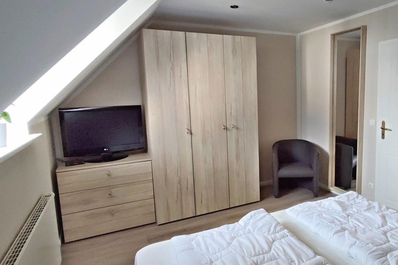 Schlafzimmer 1: gemütliches Doppelbett, großer Kleiderschrank, viel Stauraum, TV