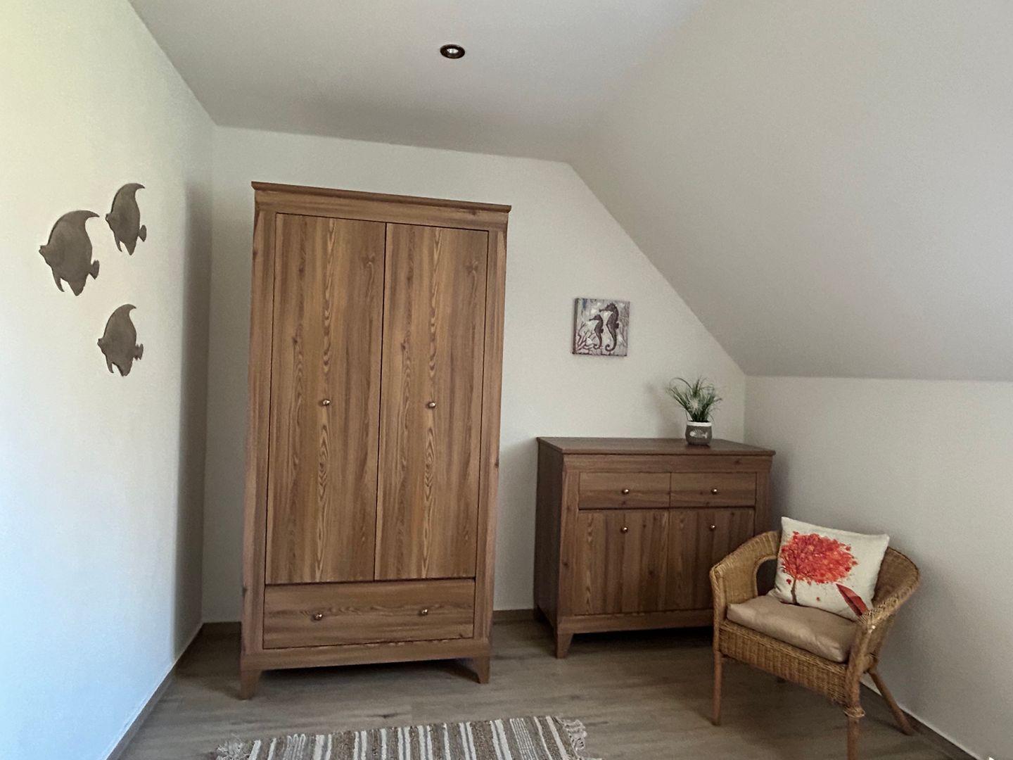 Schlafzimmer 1: gemütliches Doppelbett, großer Kleiderschrank, viel Stauraum