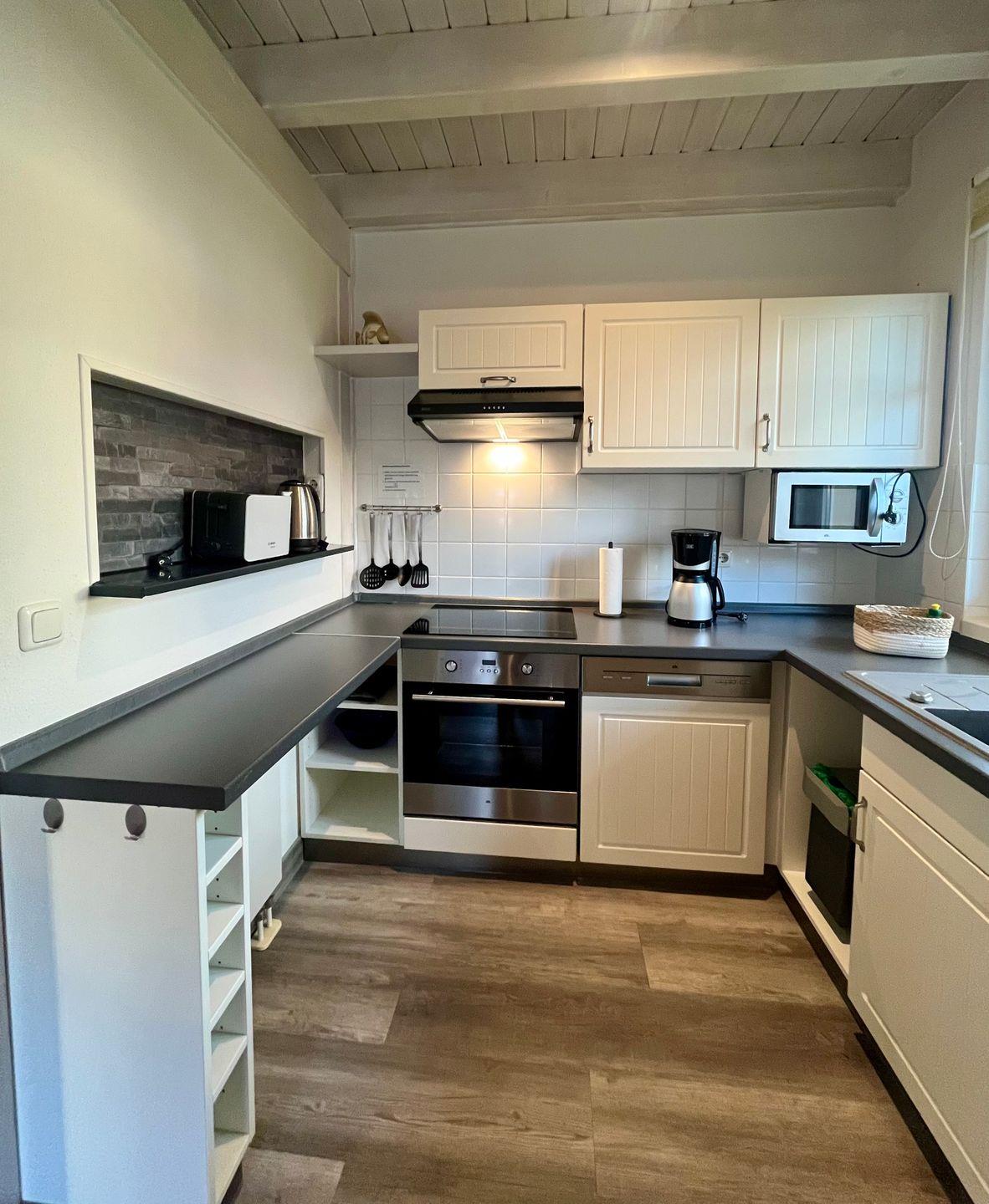 voll ausgestattete Küche (Herd, Backofen, Mikrowelle, Kühlschrank inkl. Gefrierfach, Geschirrspüler)