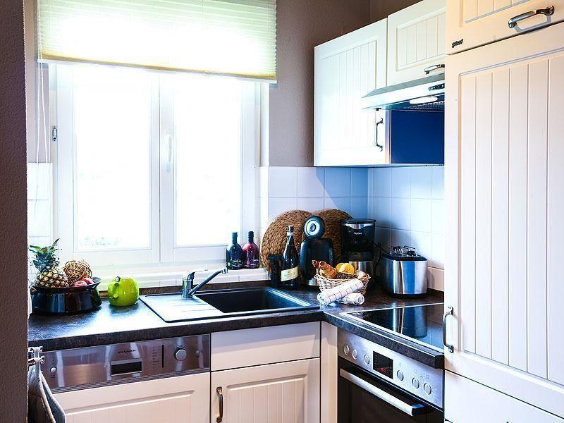 voll ausgestattete Küche (Herd, Backofen, Mikrowelle, Kühlschrank inkl. Gefrierfach, Geschirrspüler)