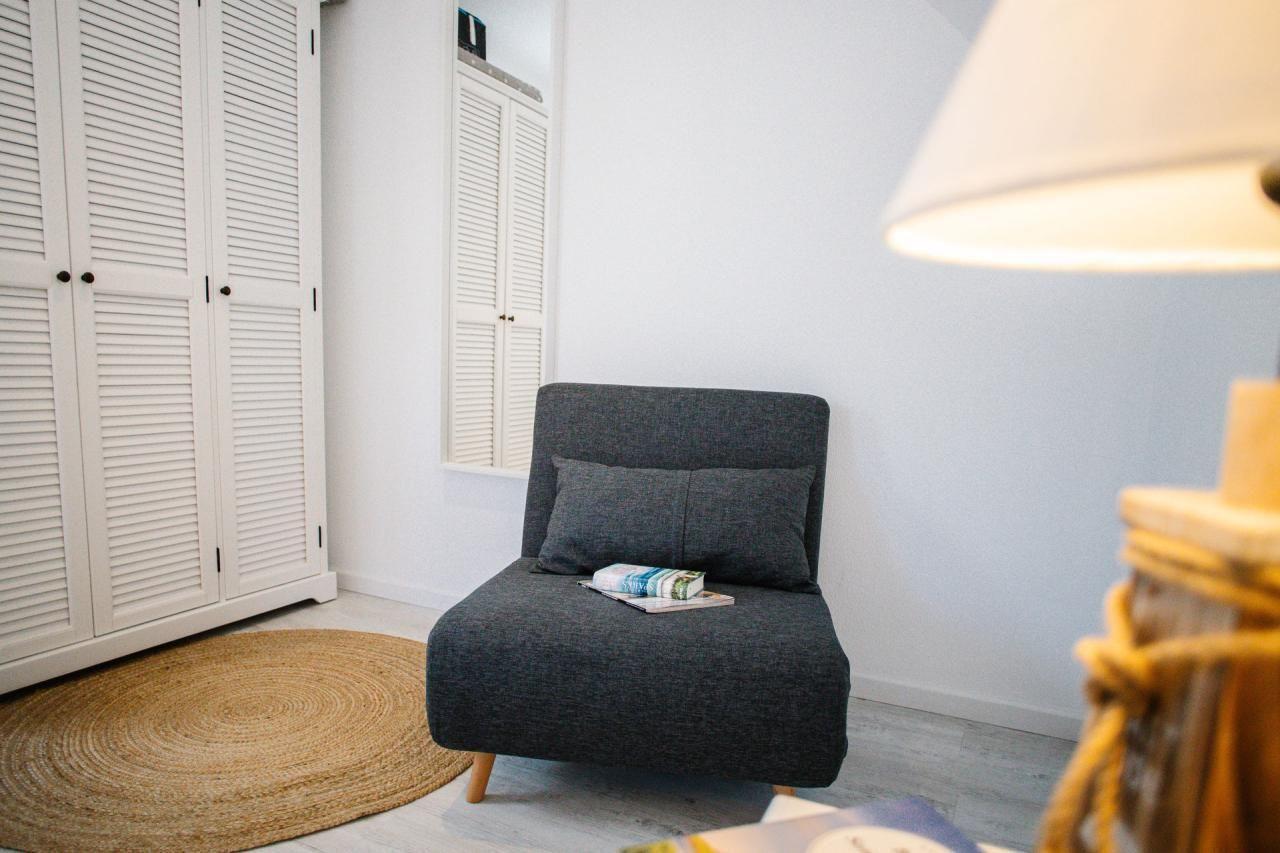 Im Erdgeschoss erwartet Sie ein liebevoll gestalteter Wohnbereich mit zwei bequemen Sesseln und einer gemütlichen Schlafcouch, die sich bei Bedarf in einen komfortablen Schlafplatz für zwei Personen verwandeln lässt. Warme Farben, stilvolle Dekoration und hochwertige Möbel schaffen eine behagliche Atmosphäre – perfekt für entspannte Abende nach einem erlebnisreichen Tag an der Ostsee. Für kalte Tage gibt es einen elektrischen Kamin.