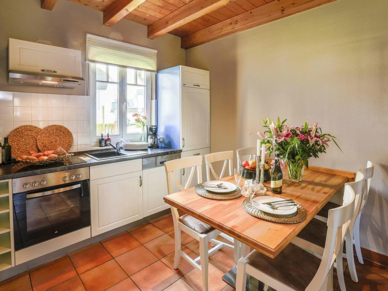 Die moderne, voll ausgestattete Einbauküche lässt keine Wünsche offen: 4-Felder-Herd, Backofen, Mikrowelle, Kühlschrank inkl. Gefrierfach und Geschirrspüler. Hier ist alles vorhanden, um Ihre Lieblingsgerichte im Handumdrehen zuzubereiten. Gemeinsam speisen Sie am großzügigen Esstisch für 6 Personen, der nahtlos in den Wohnbereich integriert ist – gesellige Abende sind garantiert.