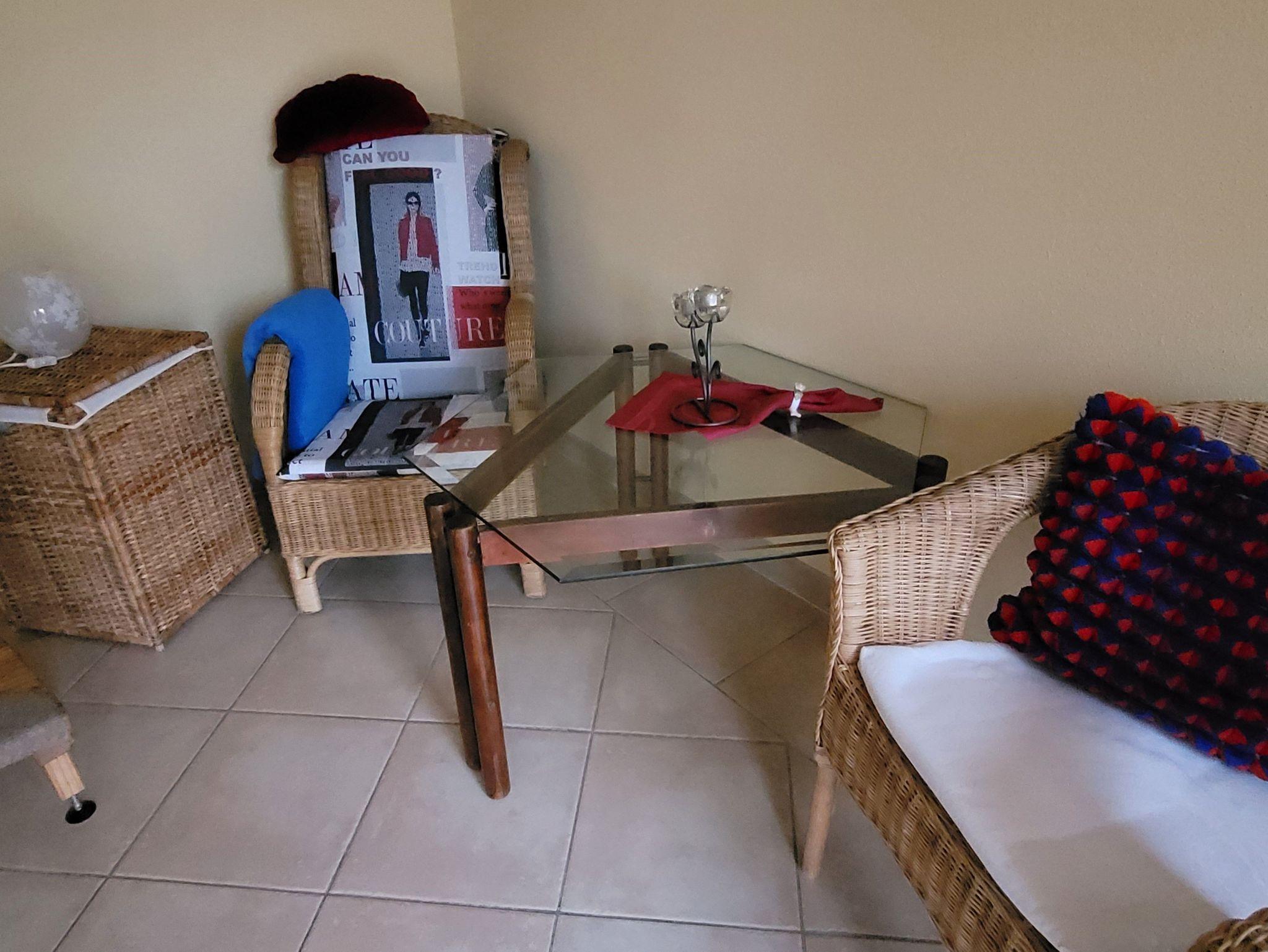 Unsere 36m² große Ferienwohnung verfügt über Bad, Küche und Wohnzimmer im gefliesten Erdgeschoß sowie das Schlafzimmer im Obergeschoss. Das Wohnzimmer ist ausgestattet mit einer federkerngepolsterten Schlafcouch (ausgeklappt 1,45m breit) sowie einer Sitzecke mit Flachbildfernseher. Das Schlafzimmer mit Teppichboden hat ein französisches Bett (1,60m breit). Nur das Bad ist nicht nach Süden ausgerichtet. Die Wohnung ist im Maisonette-Stil errichtet, das Schlafzimmer ist separat gehalten und über eine gewendelte Treppe vom Wohnzimmer erreichbar. Dies garantiert eine entspannte Urlaubsatmosphäre, da Wohn-/wie Schlafzimmer individuell genutzt werden können.