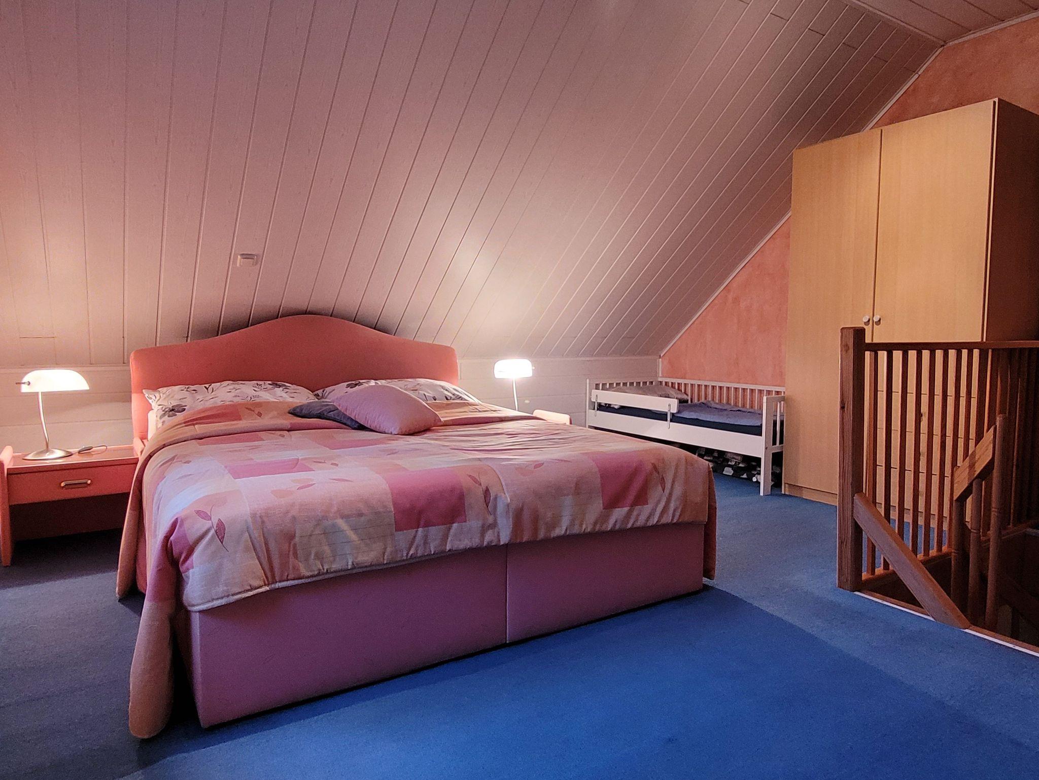 Damit ein Familienurlaub für alle Mitglieder erholsam ist, steht für ein Kind bis zu 7 Jahren im Schlafzimmer ein massives Bett mit Schutzbügel zur Verfügung. Eine Aufbettungsmöglichkeit sorgt für zusätzlichen Schlafplatz.