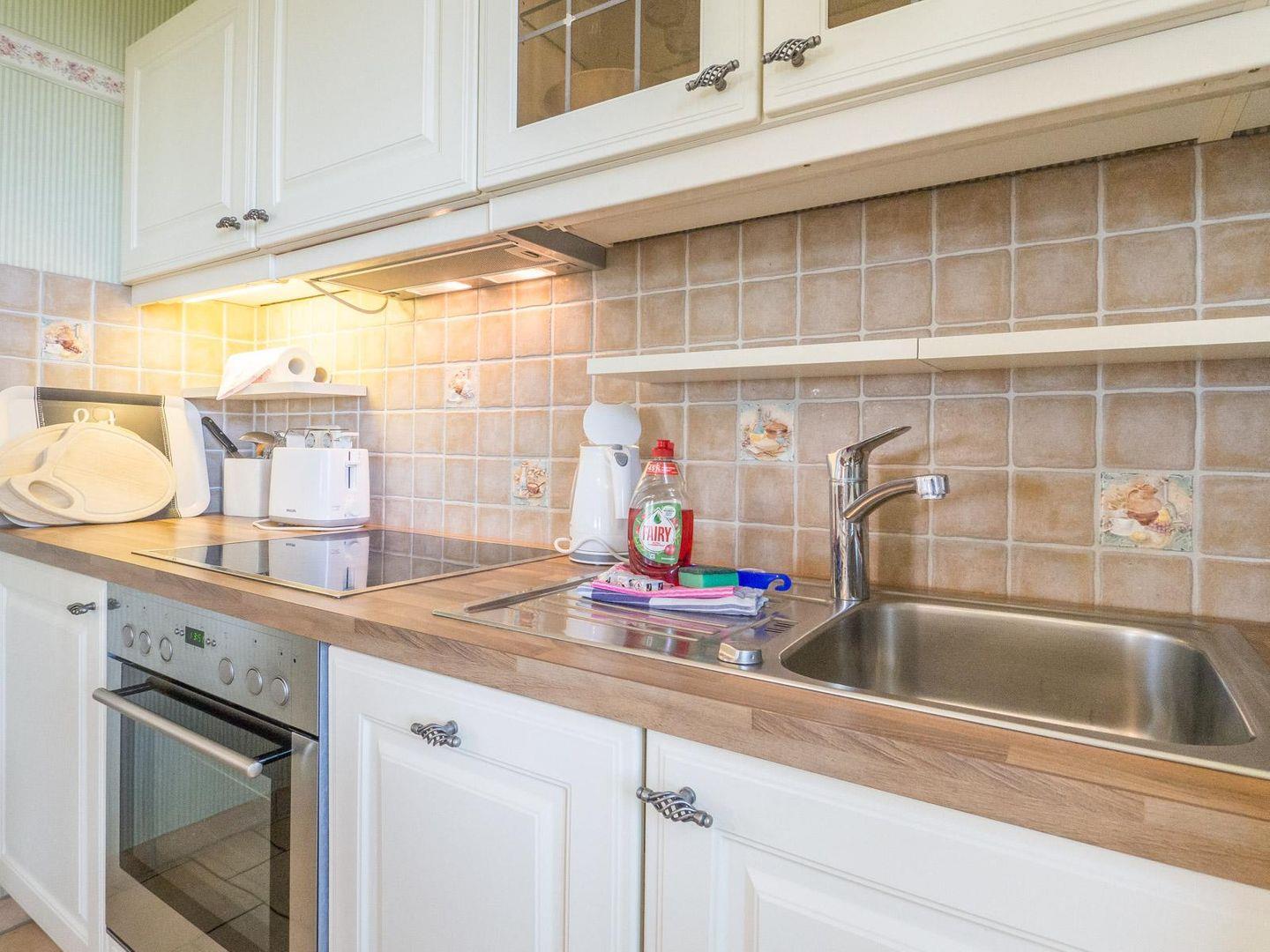 Eine Haushälfte des reetgedeckten, alten Bauernhauses beherbergt die 100-qm große Ferienwohnung "Königsmeerblick", welche sich über 3 Ebenen erstreckt. Die Wohnung mit insgesamt 4 Zimmern bietet Platz für 6 Personen. Sie unterteilt sich wie folgt: Im Erdgeschoß gibt es ein Wohnzimmer, eine Diele, eine Wohnküche, ein Abstellraum und ein Gäste-WC mit Waschmaschine u. Trockner, welche Ihnen zur Nutzung kostenlos zur Verfügung stehen. Im ersten Obergeschoß gibt es zwei Schlafzimmer mit Doppelbetten und ein großes Bad mit Badewanne und Dusche. Vom 1.OG führt eine Treppe in den Spitzboden, dem 3. Schlafzimmer mit zwei Einzelbetten, welches optimal für Kinder geeignet ist. Im "Königsmeerblick" steht den Gästen für gemütliche Stunden ein Kaminofen zur Verfügung. Im Außenbereich gibt es eine Sauna zur Mitbenutzung per Münzzahlung. Das Reethaus ist ein Nichtraucherhaus, Haustiere sind nach Absprache willkommen. Für Familien mit kleinen Kindern stehen Hochstuhl, Kinderbett, Kinderspielzeug und -bücher zur Verfügung. Die Küche ist ausgestattet mit einem 4-Zonen-Cerankochfeld, Backofen, Kaffeemaschine, Geschirrspülmaschine, Kühlschrank, Toaster, Wasserkocher, Dunstabzugshaube, Waschmaschine und natürlich mit ausreichend Geschirr, Besteck und Töpfen. Im Haus gibt es LCD-Fernseher, SAT-Anlage, CD-Player, Radio und Internetanschluss WLAN DSL. Von fast allen Fenstern dieser Wohnung können Sie den faszinierenden Blick auf das Meer genießen. Ebenso in Richtung Meer gelegen, befindet sich die große Sonnenterrasse mit Teakmöbeln, welche direkt vom Küchenbereich zu begehen ist. Im Garten des insgesamt 10.000qm großen Grundstückes stehen Gartenmöbel zur Verfügung und es ist eine Liegewiese vorhanden. Vom Grundstück gibt es einen eigenen Zugang hinunter zum Strand, der an dieser Stelle aus Kieseln und Sand besteht. Am Steilufer direkt am Haus gibt es einen Wander- und Radweg mit herrlichem Blick über die Ostsee. Nach Altenkirchen mit sehr gute Einkaufsmöglichkeit sind es ca. 4 km, nach Juliusruh mit Restaurants und Läden ca. 3km und zum Kap Arkona ca. 6 km.