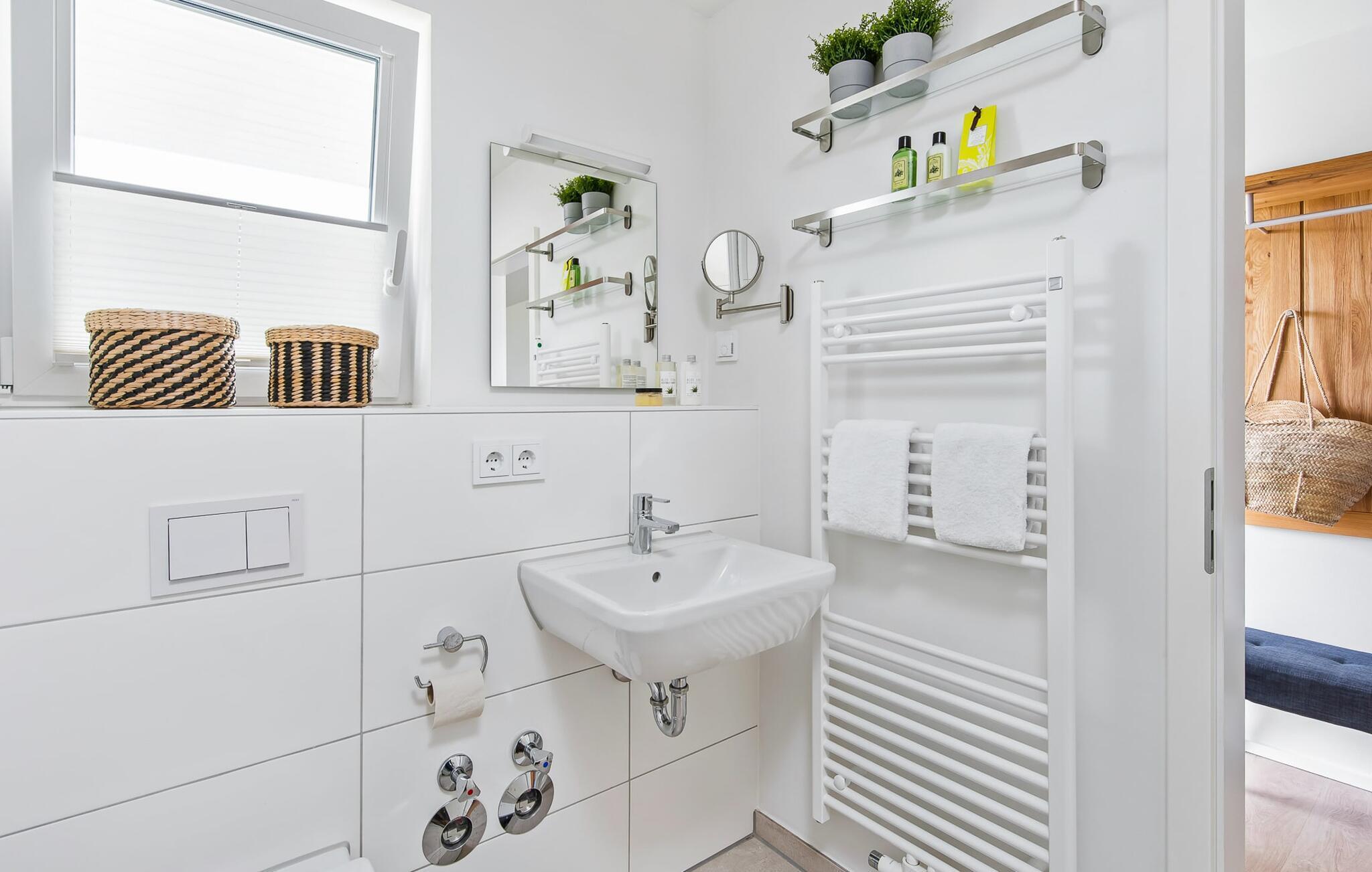 Ein Highlight im NORDEN ist ganz ohne Frage das Bad mit seiner Whirlwanne und der Infrarotsauna, die es zu einem kleinen privaten Wellnessbereich machen. Auch die weitere Ausstattung lässt keine Wünsche für einen erholsamen Wellnesstag offen.