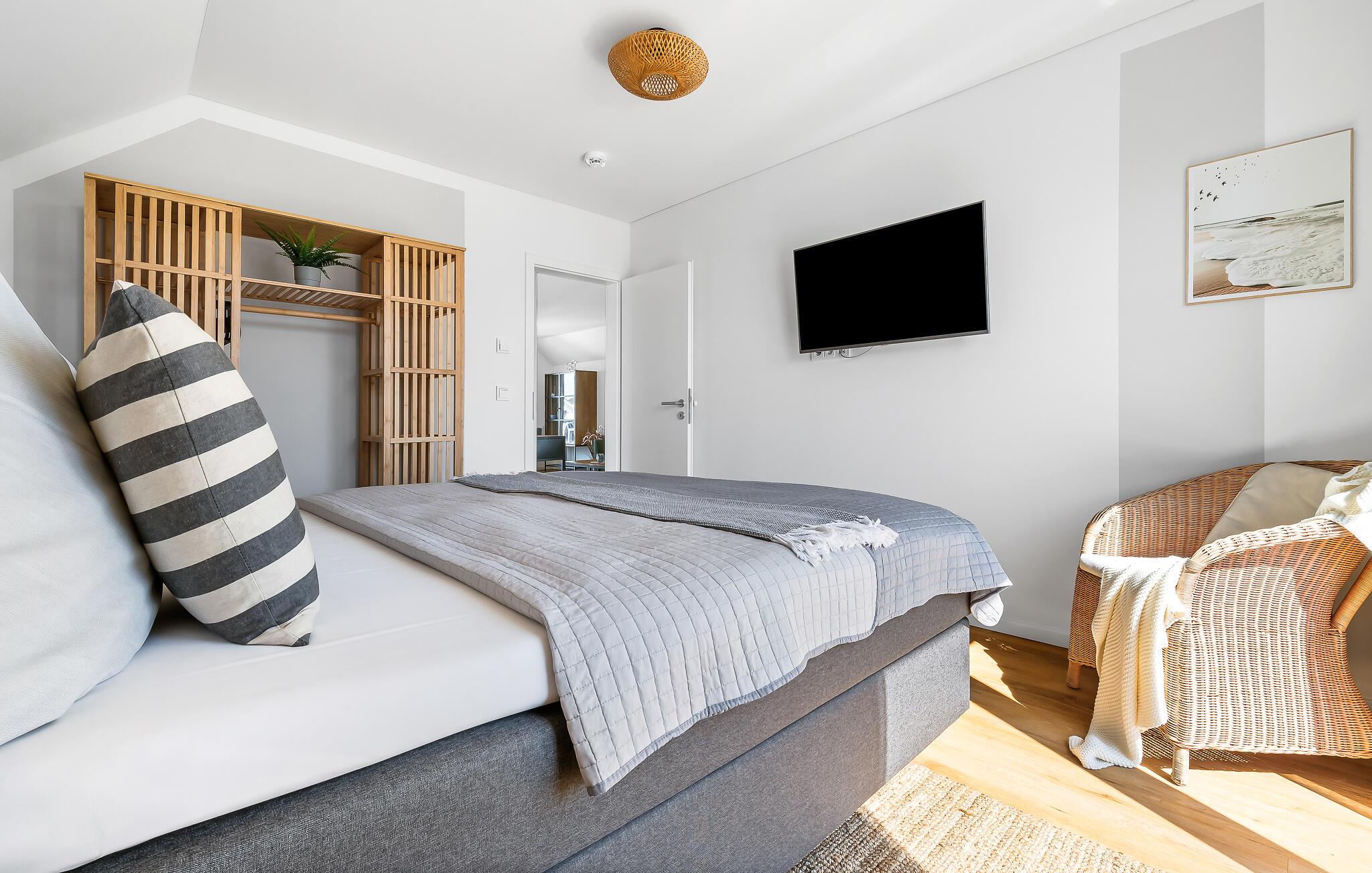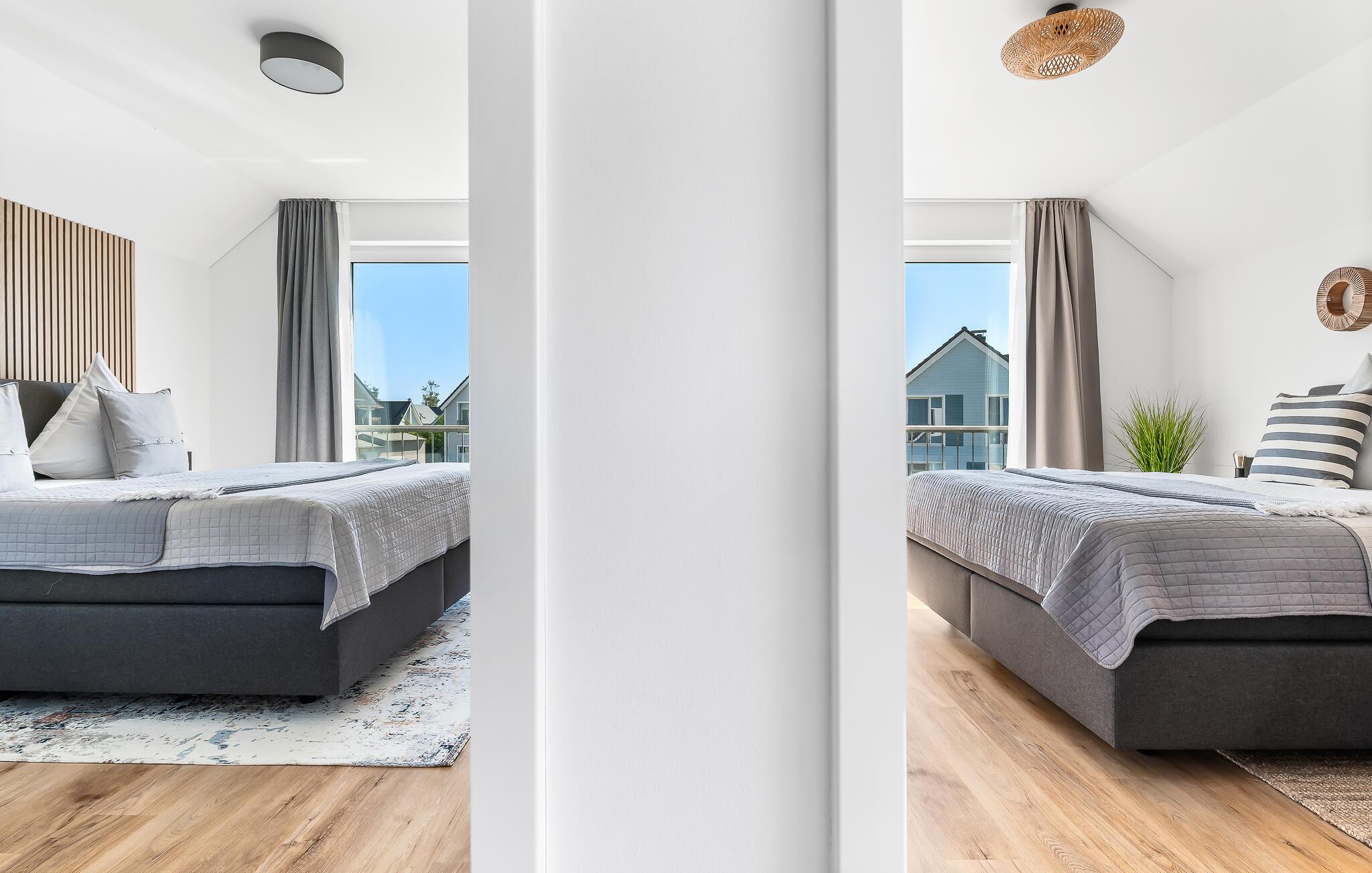 Die beiden Schlafzimmer sind jeweils mit komfortablen Doppel-Boxspringbetten ausgestattet, die eine erholsame Nachtruhe versprechen. In einem der Schlafzimmer findet ihr ebenfalls einen Smart-TV, um den abenteuerlichen Urlaubstag gemütlich ausklingen zu lassen.