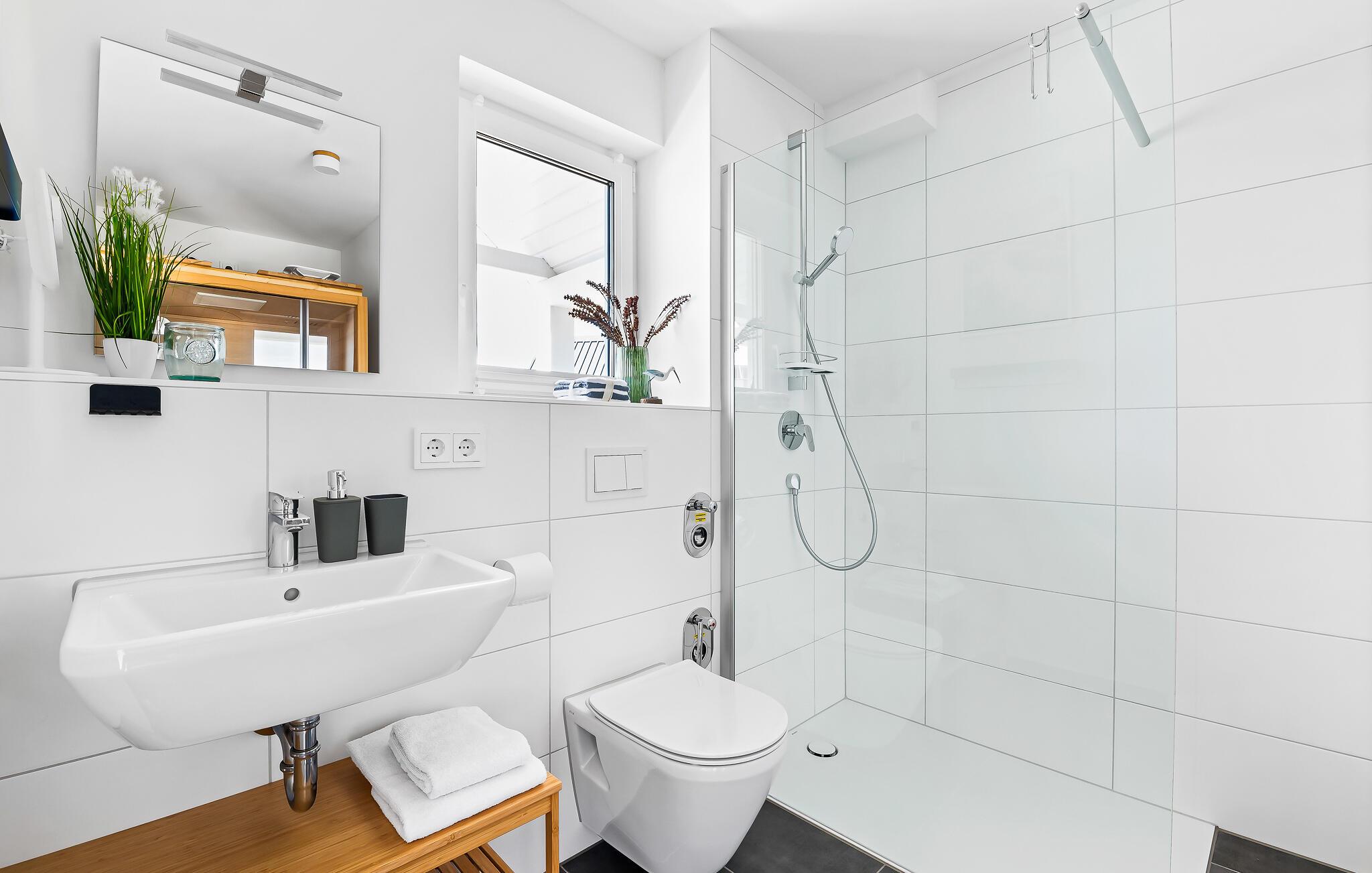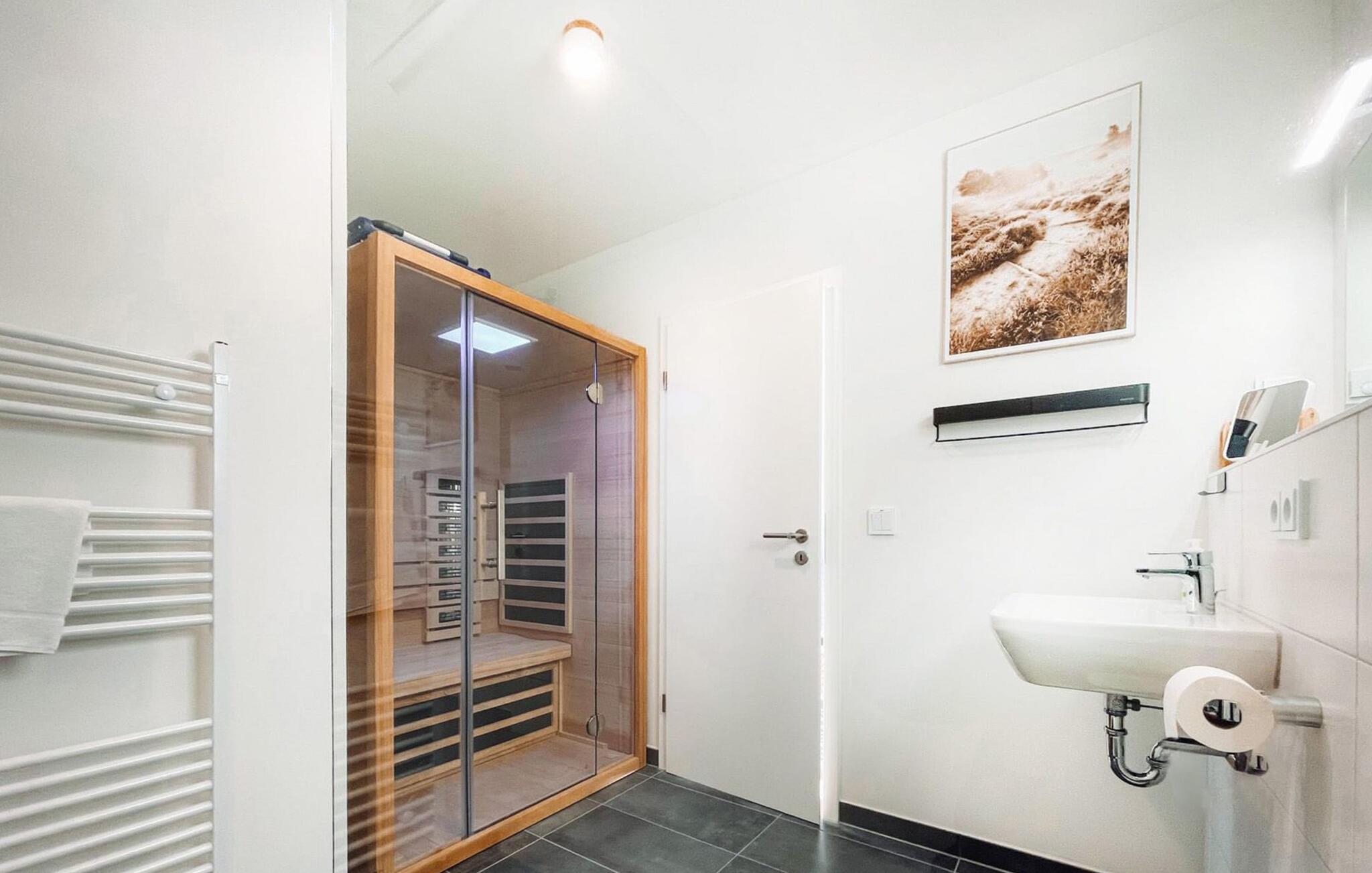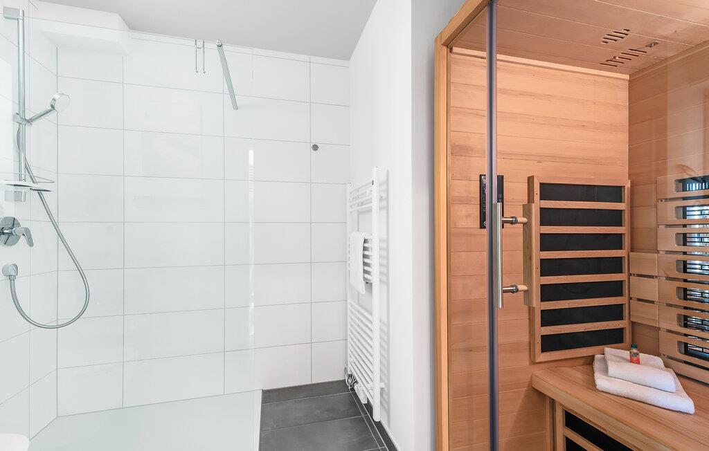 Nach einem erlebnisreichen Tag könnt ihr in der bodengleichen Dusche eine erfrischende Dusche nehmen und in der Infrarot-Sauna entspannender ideale Abschluss für einen gelungenen Urlaubstag.