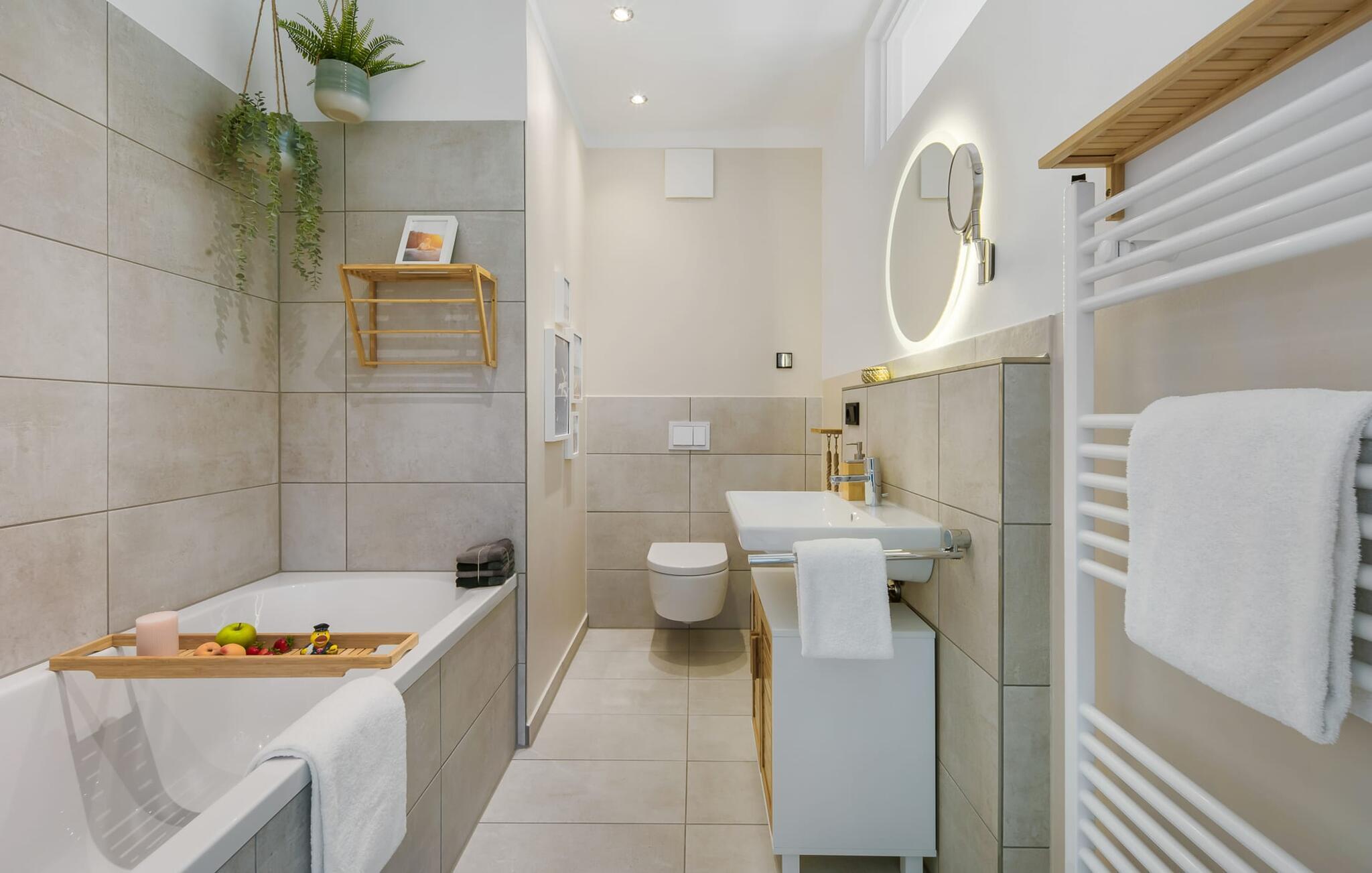 Ein zweites Vollbad mit Badewanne rundet das Komplettpaket für einen erholsamen Urlaub ideal ab.