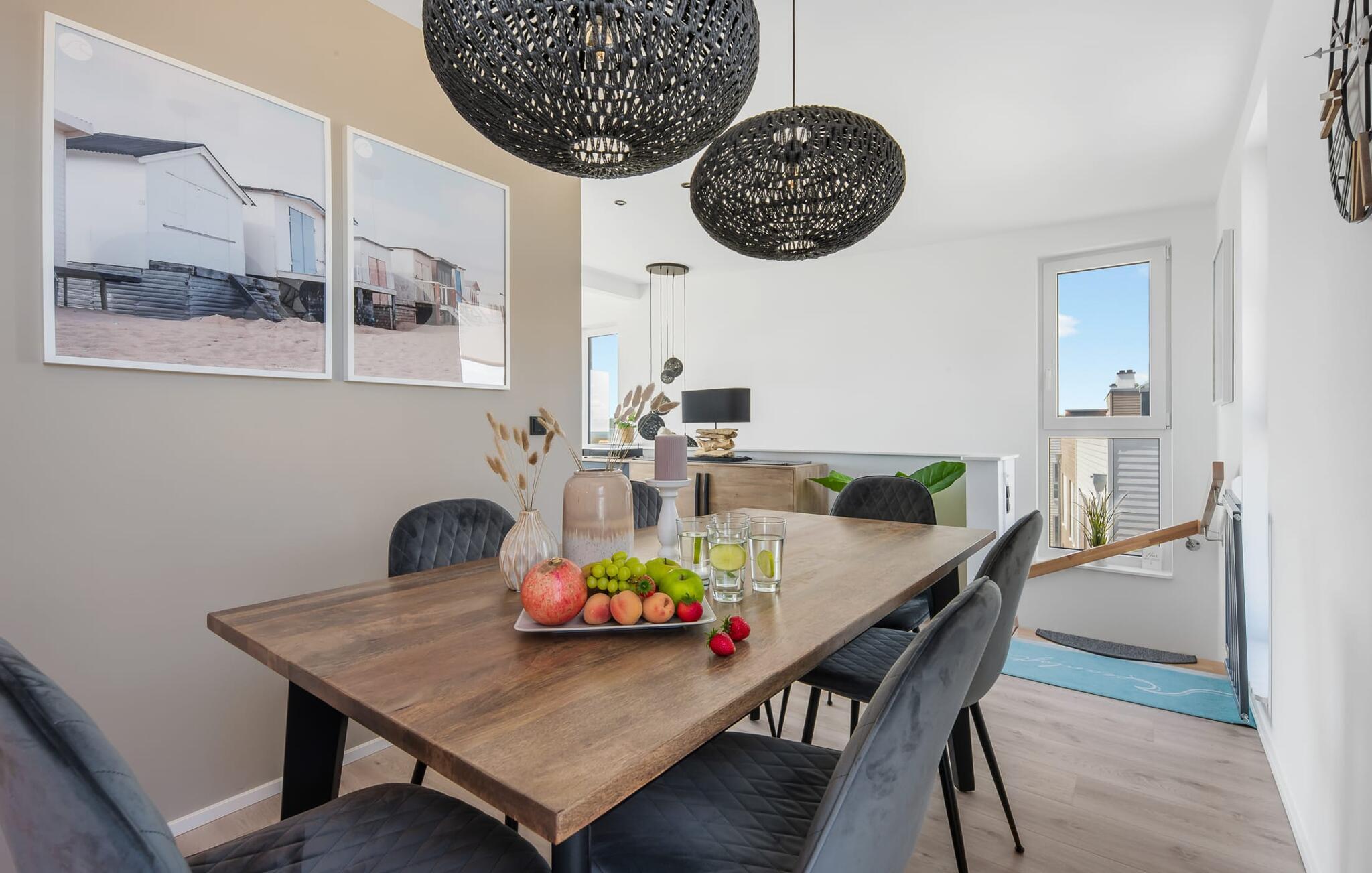 OCEANLOFT ist eine großzügige und geräumige Maisonette-Ferienwohnung im ersten und zweiten Obergeschoss mit direktem Blick auf das Meer, Naturschutz-Salzwiesen und Felder.