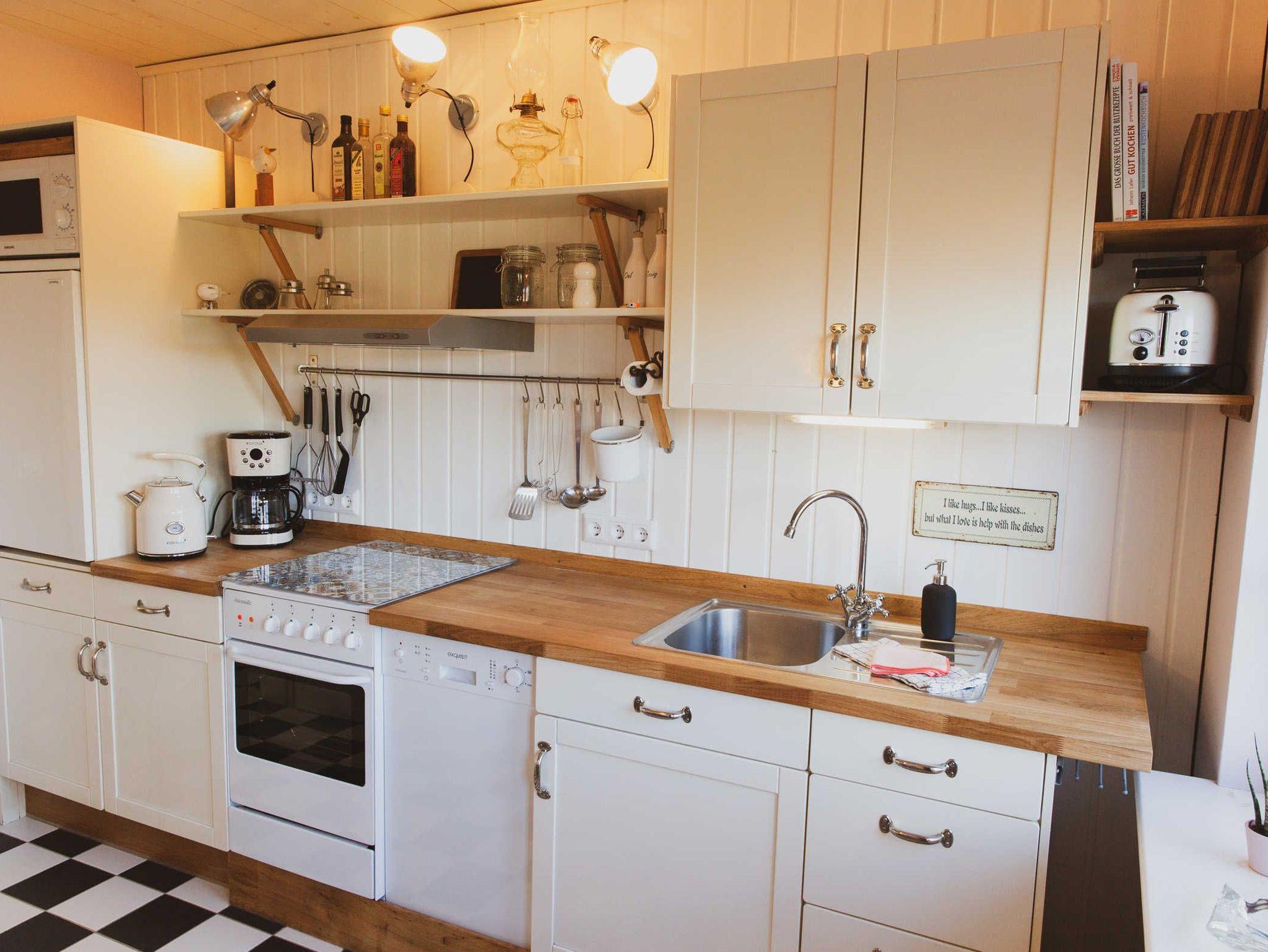 Die gut ausgestattete Küche bietet alles zum Kochen und Speisen.