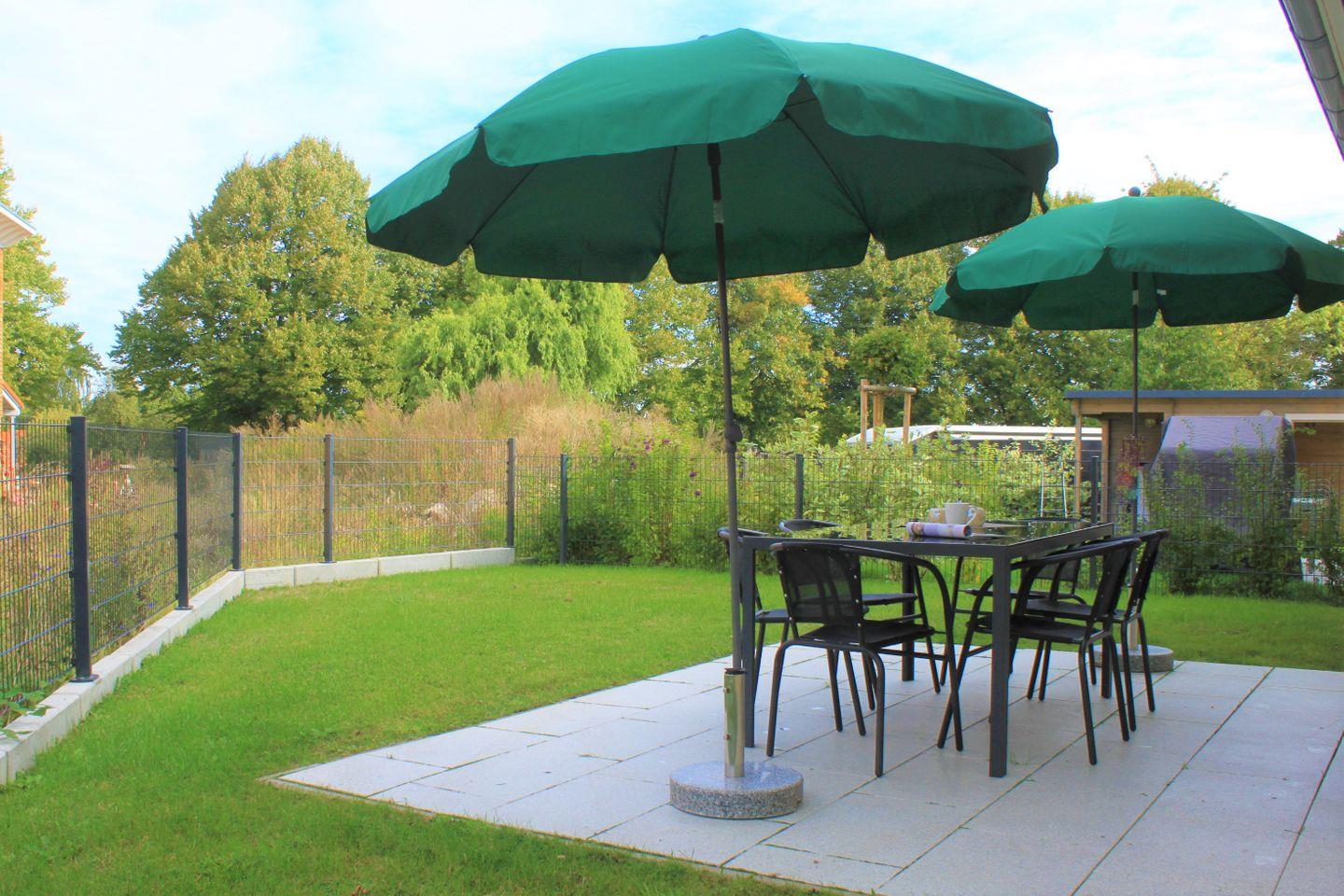Auf der großen Terrasse mit umliegendem Garten kann die Ostsee-Sonne auch auf dem Grundstück eingefangen werden und Sie genießen schöne Stunden der Ruhe und Erholung.