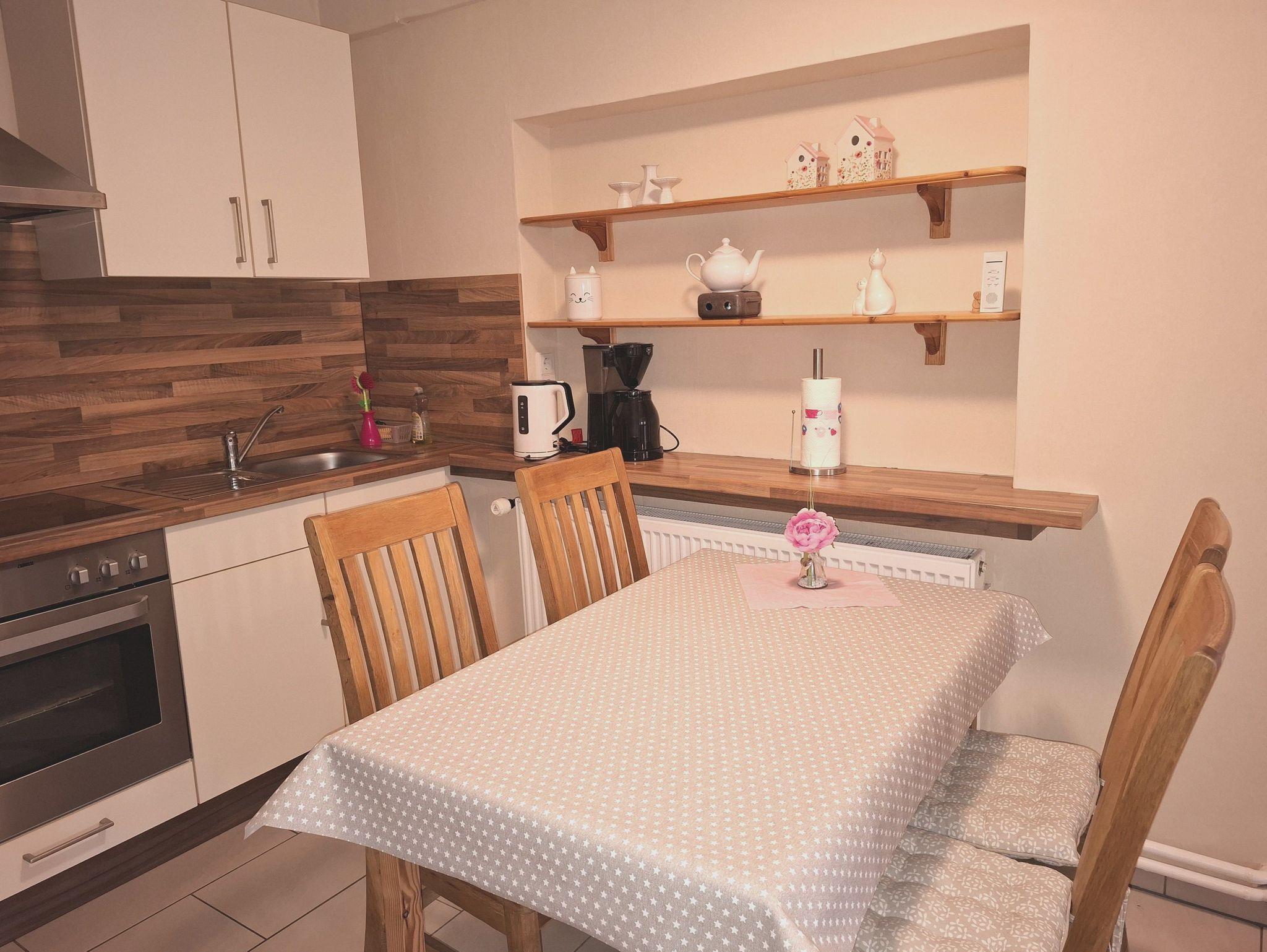 Die helle und gemütliche Ferienwohnung im beschaulichen Dörfchen Barderup ist ländlich gelegen, auf einem ehemaligen Bauernhof. Sie verfügt über einen eigenen Eingang. Die helle Wohnung erstreckt sich auf 75 qm über zwei Etagen und ist für bis zu vier Personen geeignet: im Erdgeschoss befinden sich das gemütliche Wohnzimmer mit Sofaecke und TV sowie eine offene, modern und sehr gut ausgestattete Küche (inkl. Geschirrspüler) mit Esstisch und Stühlen. Hinter der Küche befindet sich ein Schlafzimmer mit zwei Einzelbetten und die Treppe ins Obergeschoss: hier liegen das hübsche Schlafzimmer mit Doppelbett und großem Kleiderschrank sowie das helle Duschbad. Im Garten steht den Gästen eine Sitzgruppe mit Tisch und Stühlen zur Verfügung. Fahrräder können im geräumigen Eingangsbereich abgestellt oder im Schuppen gleich neben dem Haupthaus untergestellt werden.