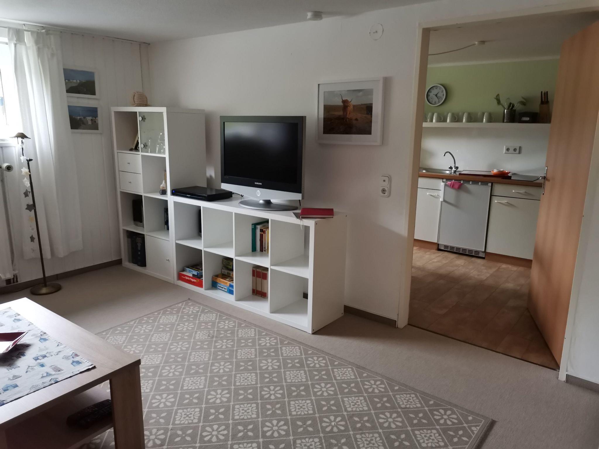 Die Wohnung befindet sich im Souterrain, Fenster in Höhe der Außenanlage, daher sind die Räume hell u. sonnig. Für die Abende sind Spiele für Kinder und Erwachsene, sowie für "Leseratten" ist Literatur vorhanden.