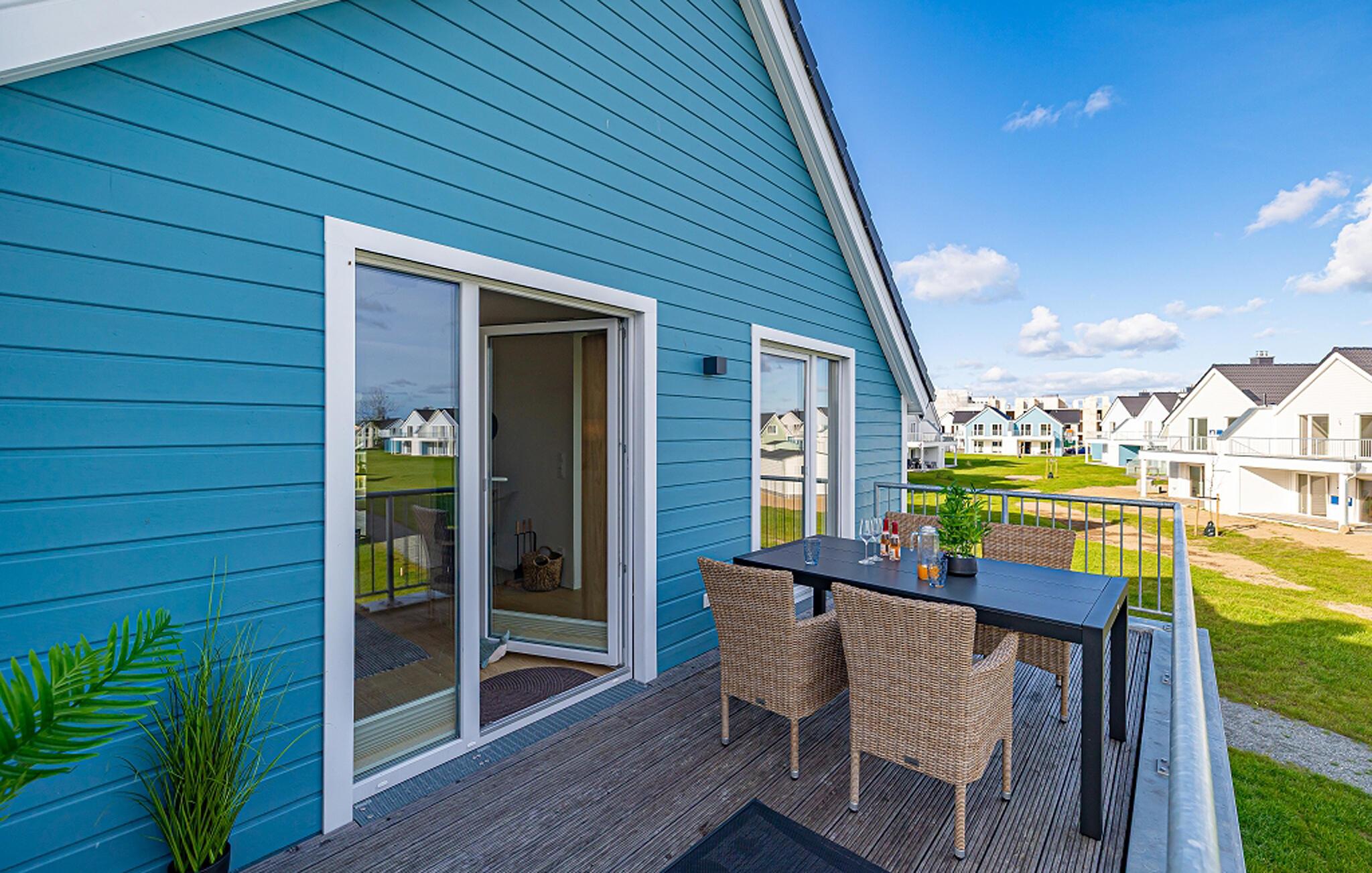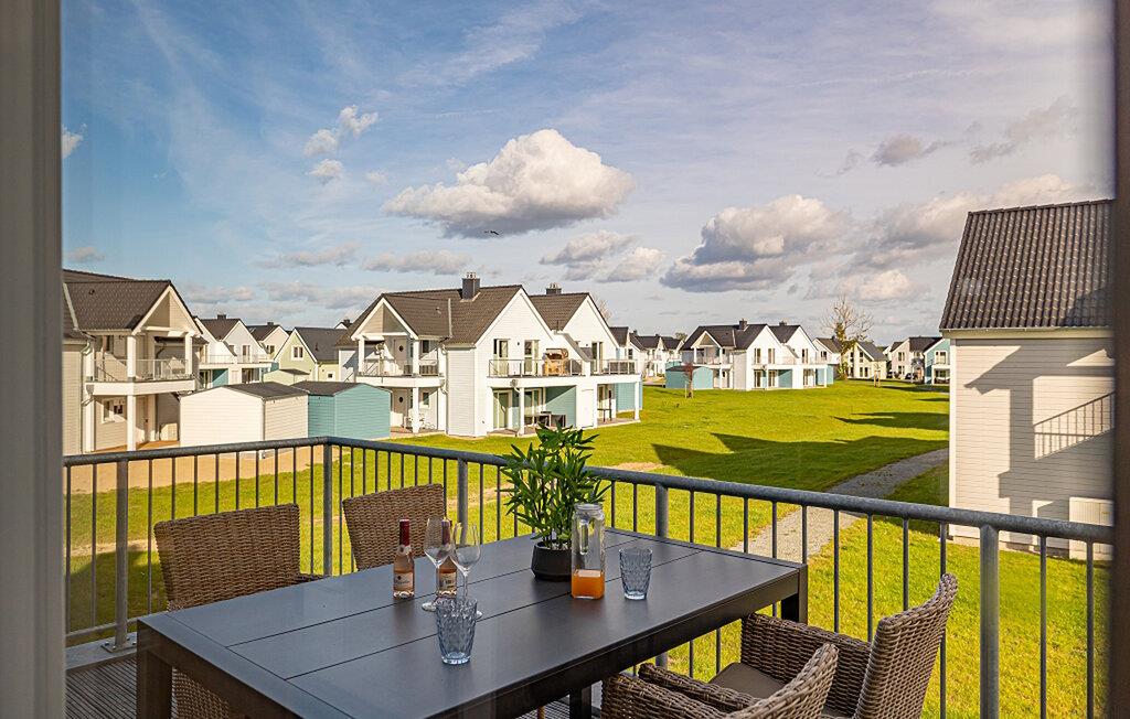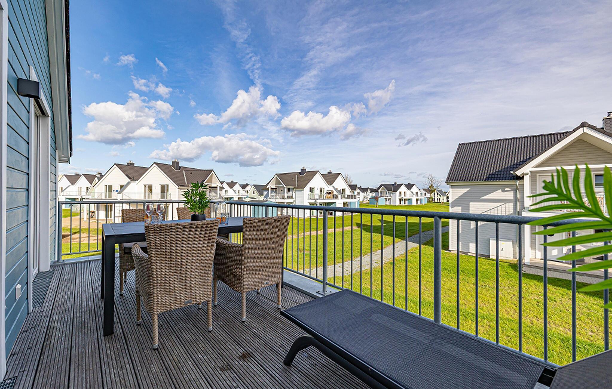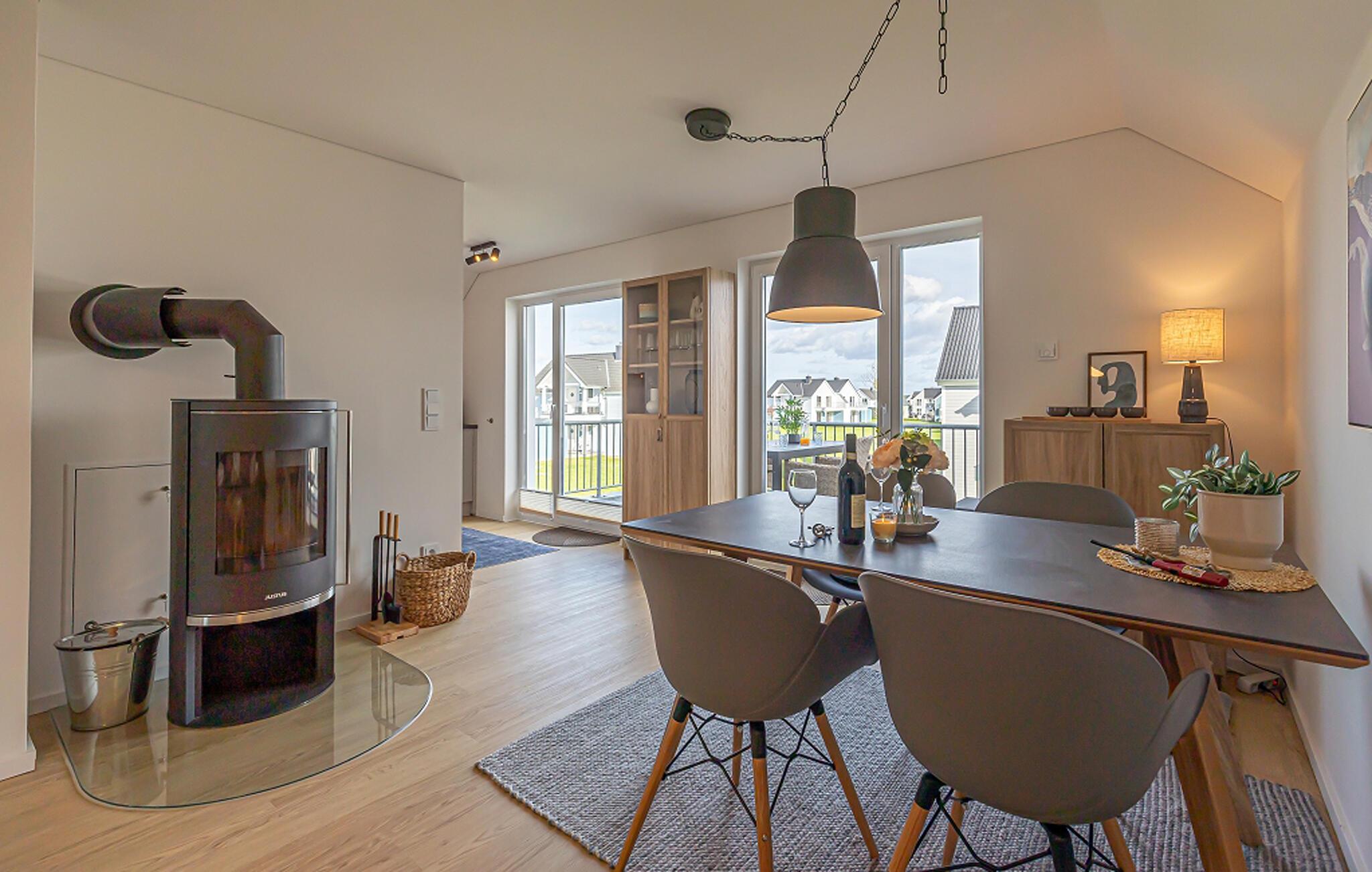 Moderne Ferienwohnung mit Balkon, Kamin und Infrarotsauna nahe feinem Strand in OstseeResort Olpenitz.
